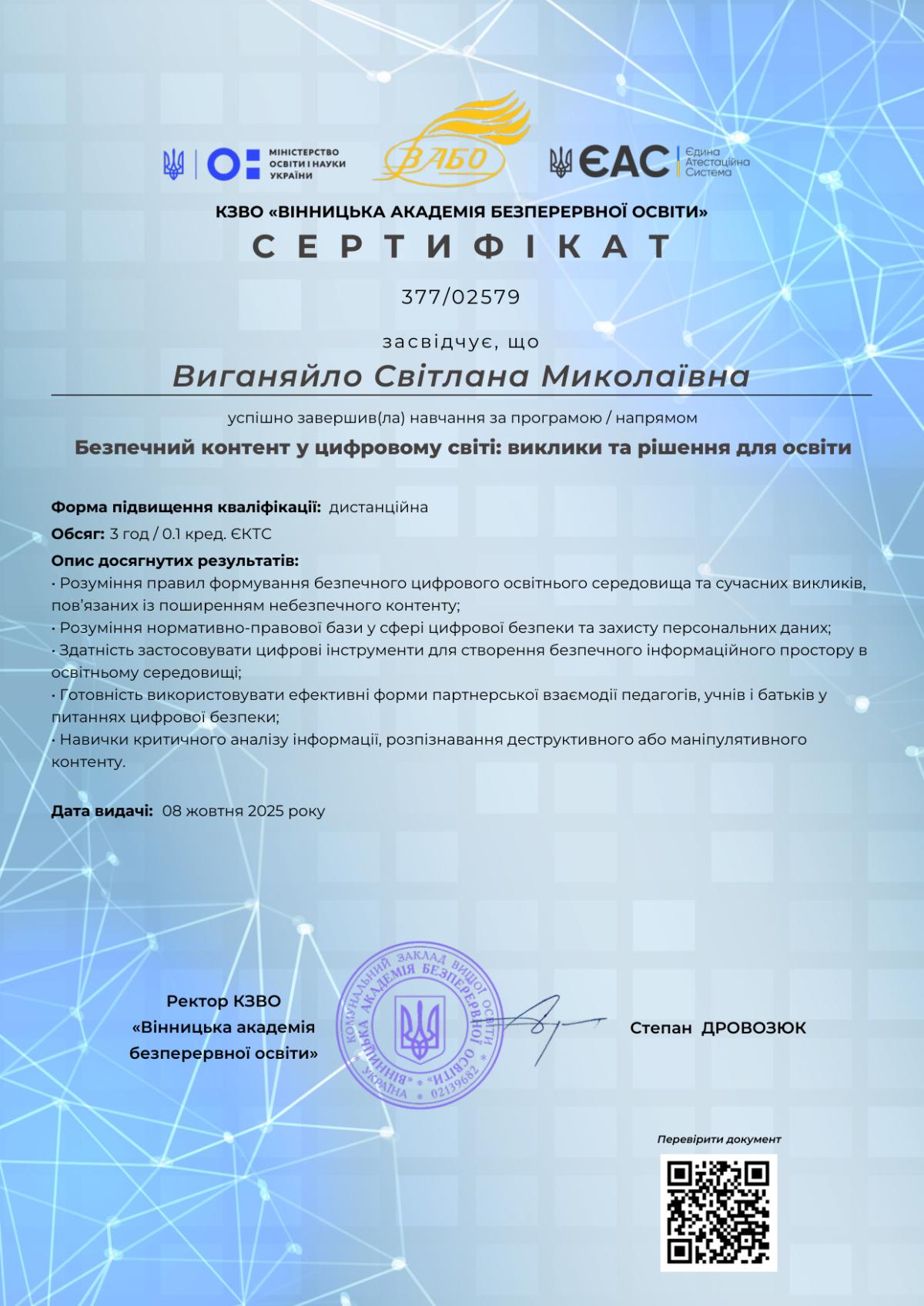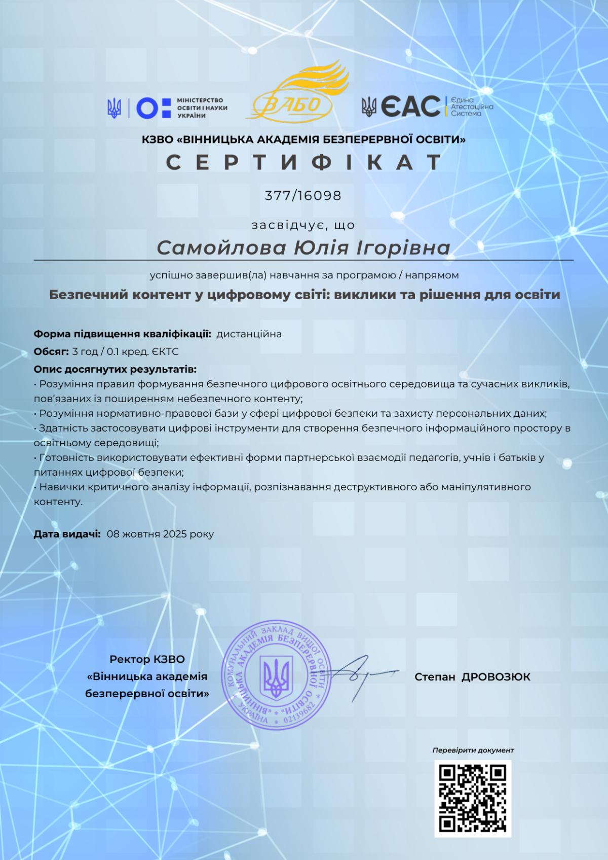 Учасники отримали сертифікати про підвищення кваліфікації. Отримані знання та навички спряють особистісному зростанню і будуть використані в кураторській роботі і під час освітнього процесу.