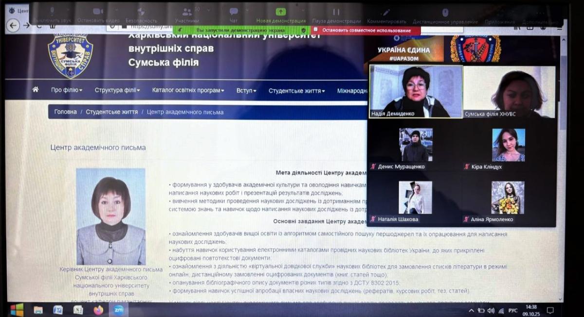 Також першокурсників ознайомили із сторінкою сайту Сумської філії «Центр академічного письма», де розміщена вичерпна інформація щодо написання та оформлення різних видів наукових досліджень.