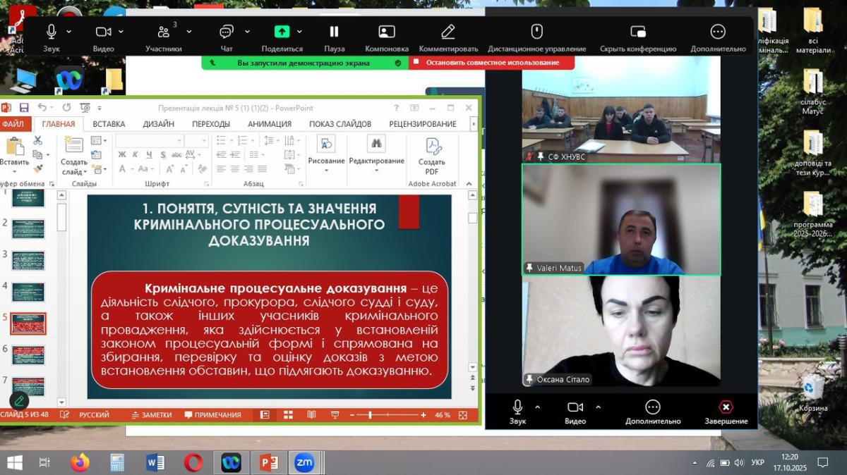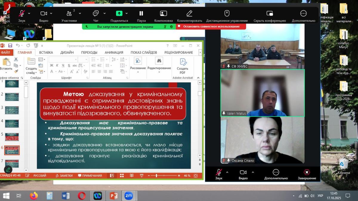 У Сумській філії Харківського національного університету внутрішніх справ відбулася подія, що має виняткове значення для професійного становлення майбутніх правоохоронців – розширене бінарне заняття на тему «Докази і доказування у кримінальному провадженні», організоване для курсантів навчальної групи СФ-24-1Пр старшим викладачем кафедри юридичних дисциплін Оксаною Сітало.