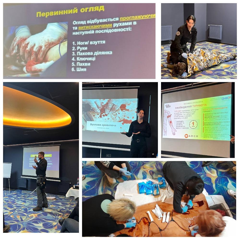 Програма тренінгу поєднувала теоретичні та практичні заняття з надання домедичної допомоги: зупинка кровотеч, забезпечення дихальних шляхів, алгоритм M.A.R.C.H., дії при травмах і евакуації постраждалих. Особливу увагу приділено практиці в «гарячій» і «теплій» зонах та відпрацюванню командної взаємодії.