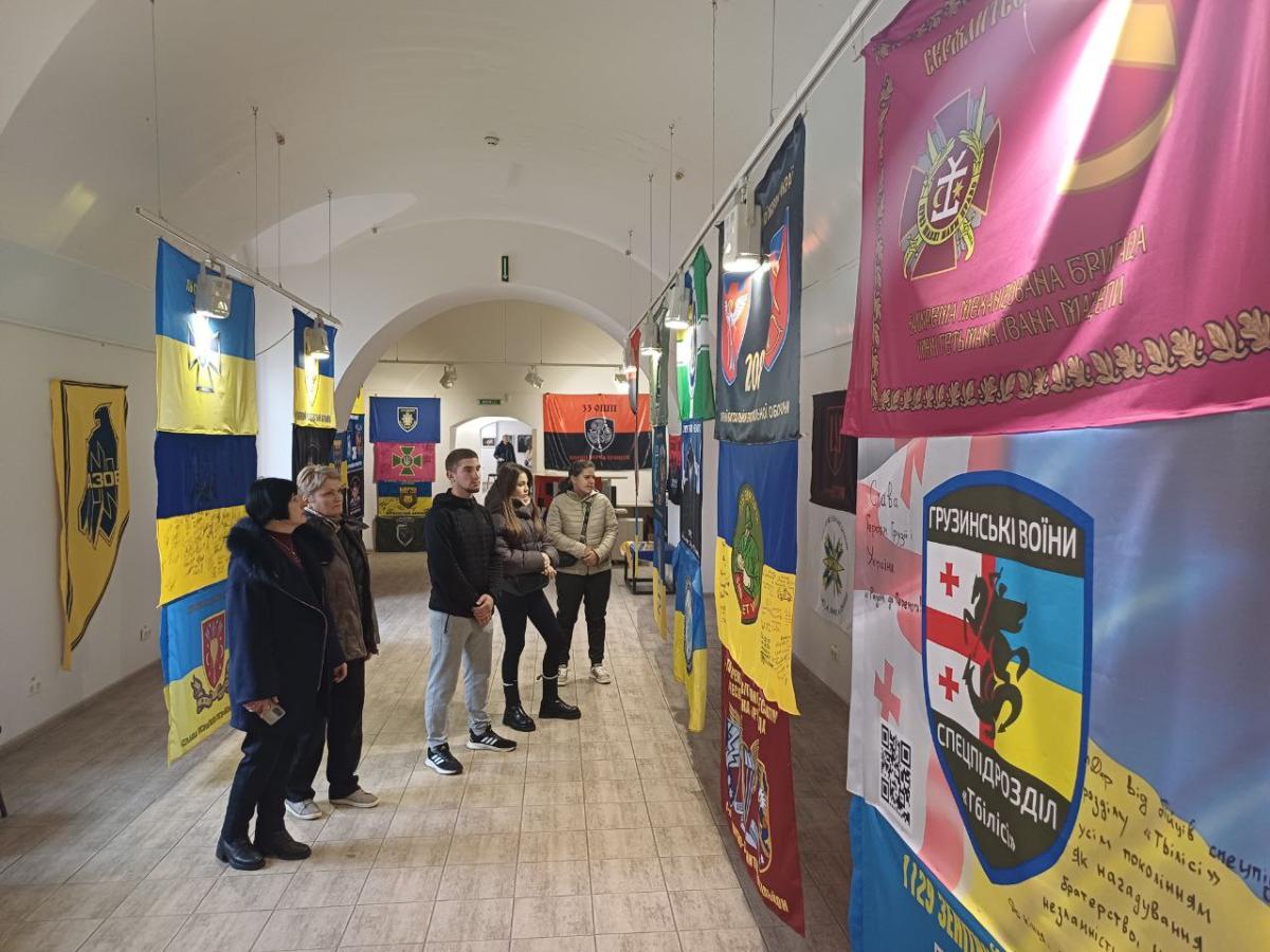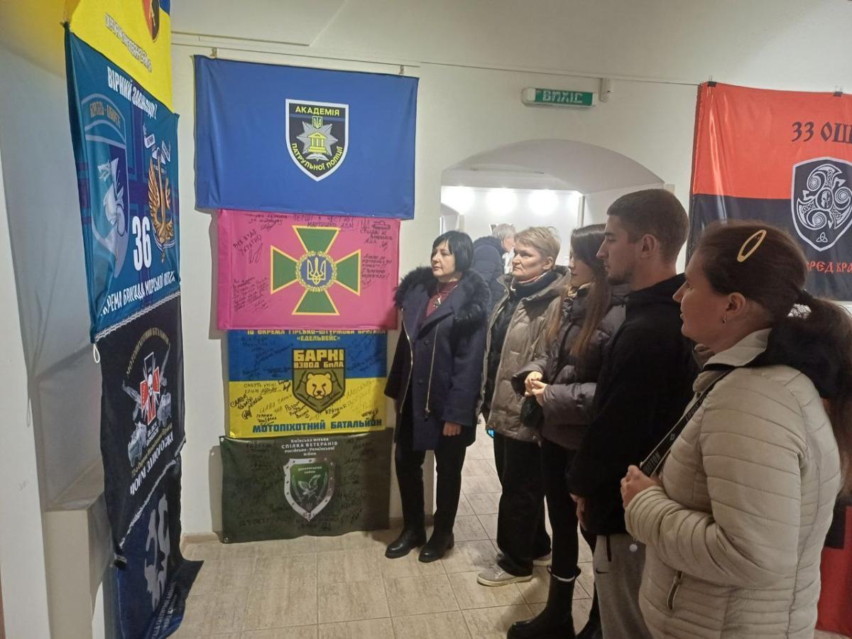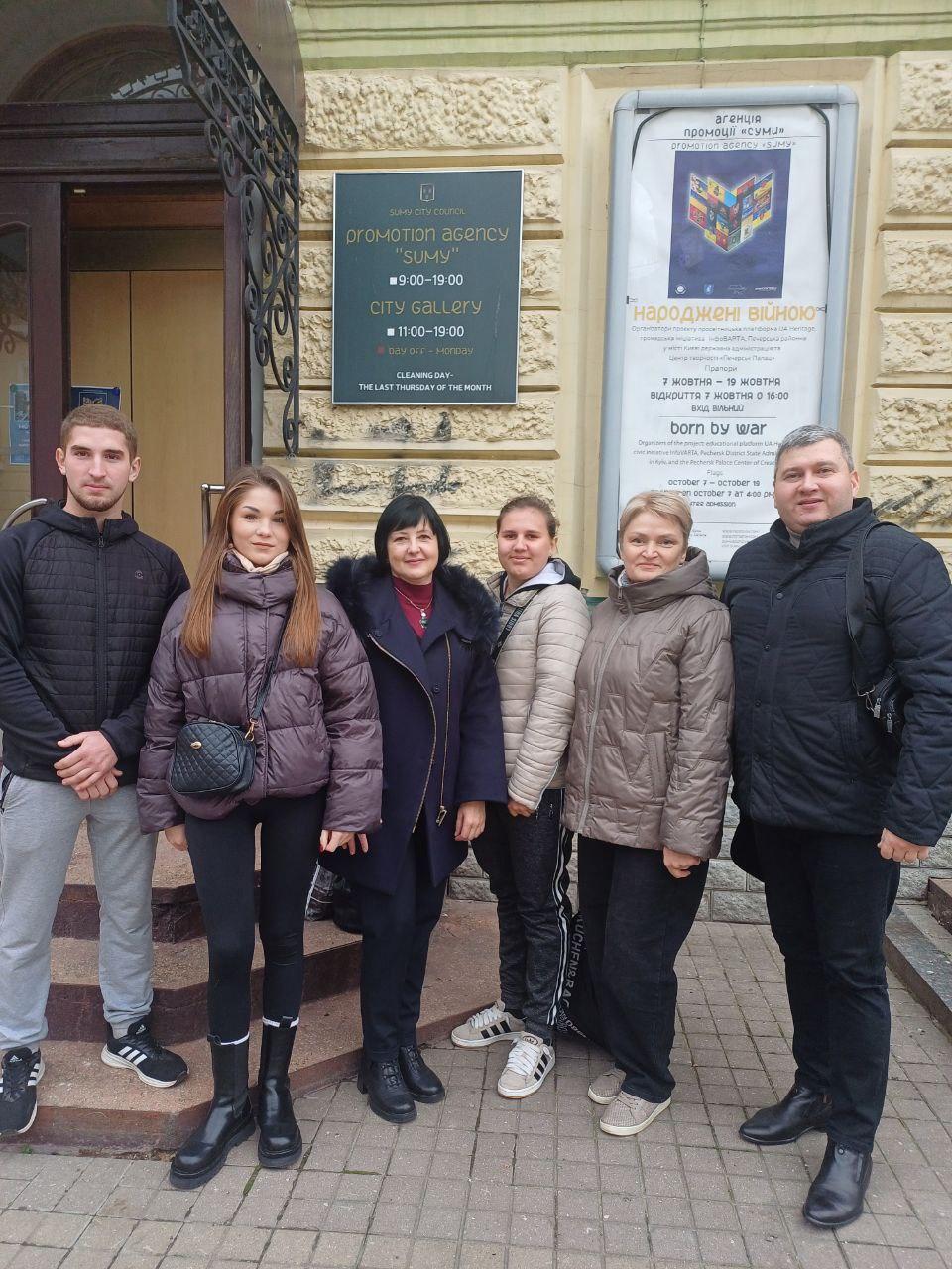 З метою військово-патріотичного виховання науково-педагогічними працівниками кафедри соціально-економічних дисциплін Сумської філії Харківського національного університету внутрішніх справ Оленою Лук’янихіною, Світланою Виганяйло і Володимиром Дементовим, кураторами навчальних груп СФдср-23-1,2 Пр, СФдср-23-1,2Пд, було організовано екскурсію до галереї "Агенції промоції Суми". Здобувачі вищої освіти і куратори ознайомились з експонатами виставки «Народжені війною» – більше ніж 50-ма прапорами легендарних бойових підрозділів, які беруть участь у захисті і визволенні Сумщини: Об’єднаної штурмової бригади Національної поліції «Лють»; 72 окремої механізованої бригади "Чорні запорожці"; Легендарного підрозділу "АЗОВ".- Руху опору СС; Національної гвардії України; 1-го військового шпиталю; Добровольчого українського корпусу; Бригади тактичної авіації «Привид Києва»; сил ППО та багато інших.