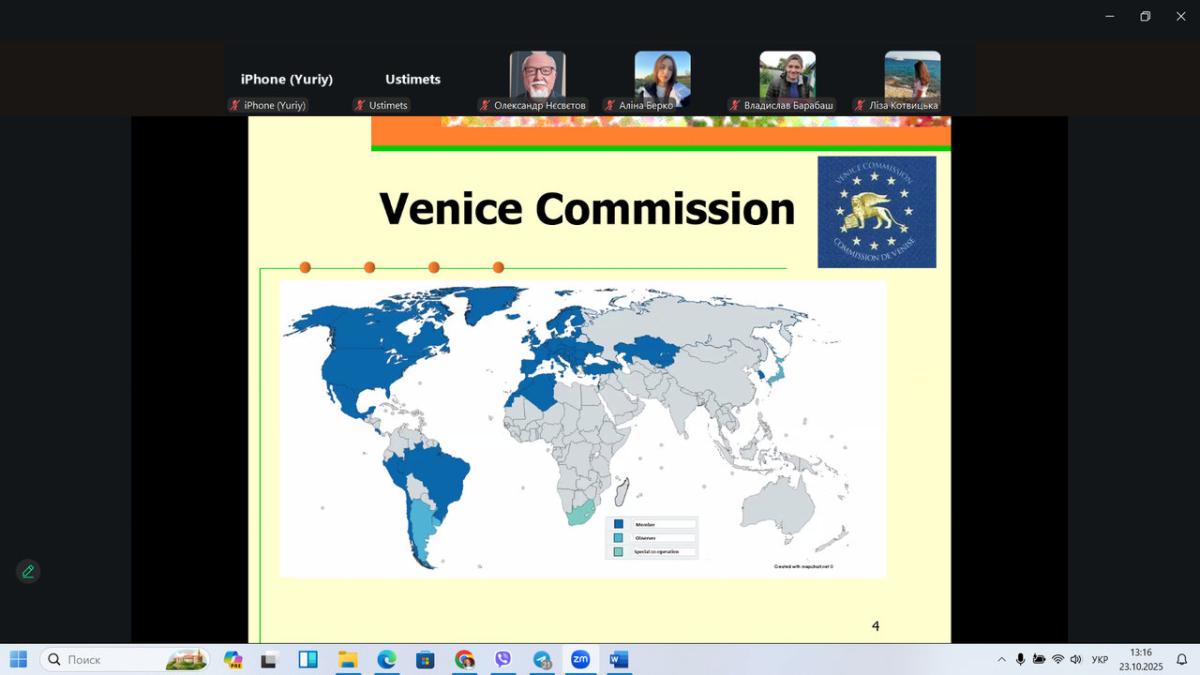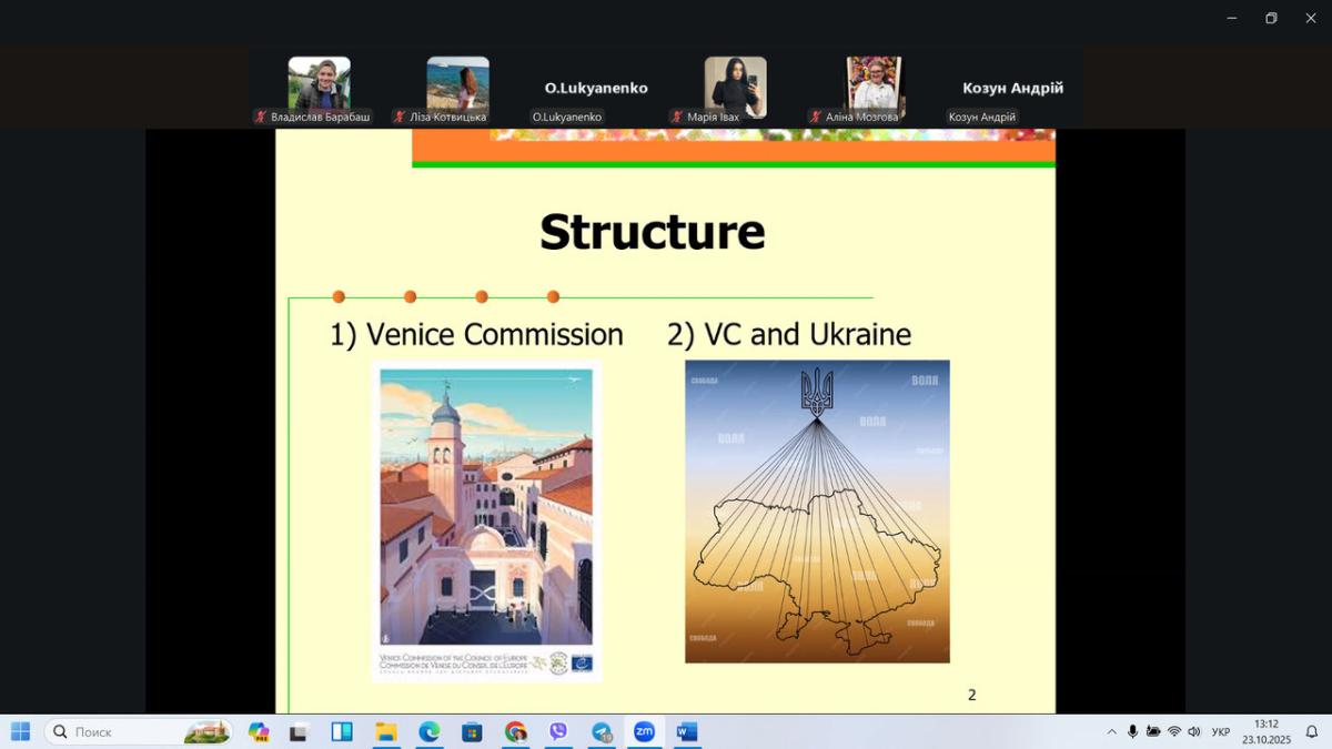 Студенти першого та четвертого курсів спеціальності «Право» Сумської філії Харківського національного університету внутрішніх справ разом із гарантом освітньої програми «Право», професором кафедри юридичних дисциплін Олексієм Шумілом, долучилися до тематичної онлайн-лекції на тему «Венеційська комісія та Україна: демократичні стандарти і верховенство права».