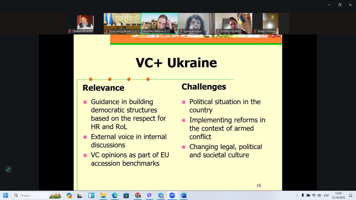 Захід було організовано Конституційним Судом України, а спікером виступила професорка міжнародного права Вероніка Білкова (Veronika Bílková) (Чехія) — членкиня та віце-президентка Венеційської комісії Ради Європи (European Commission for Democracy through Law).