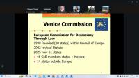 У межах лекції спікерка окреслила історію, структуру та ключові напрями діяльності Венеційської комісії у сферах конституційного й виборчого права, захисту прав людини та розвитку демократичних інституцій. Особливу увагу було приділено співпраці України з Комісією, яка триває з 1995 року. За цей період держава отримала 121 висновок, що стосувалися, зокрема, конституційної та судової реформ, виборчого законодавства, утвердження верховенства права, захисту прав людини, а також питань воєнного часу та євроінтеграції.