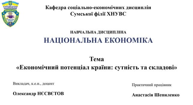Студенти отримали поглиблені знання про складну структуру економічного потенціалу країни. Було наголошено на критичній важливості розширення знань із національної економіки, її проблем та перспектив. Як практичне завдання запропоновано порівняльний аналіз економічних потенціалів України та Польщі для пошуку шляхів його підвищення та посилення співпраці.
