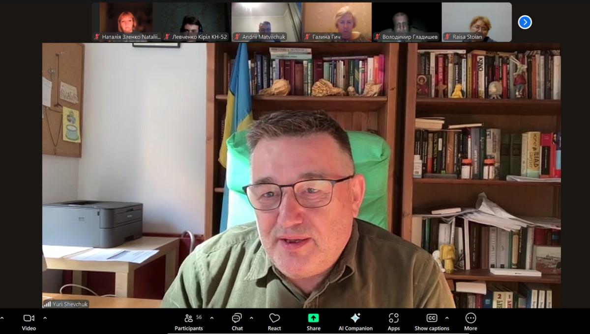 Доцент кафедри гуманітарних дисциплін Сумської філії Харківського національного університету внутрішніх справ Наталія Зленко долучилася до онлайн-зустрічі з відомим мовознавцем, перекладачем і журналістом Юрієм Шевчуком (Колумбійський університет, США). Захід організувала кафедра журналістики та філології Сумського державного університету з нагоди Дня української писемності та мови. Тема зустрічі – «Українська мова та ідентичність у часі війни».