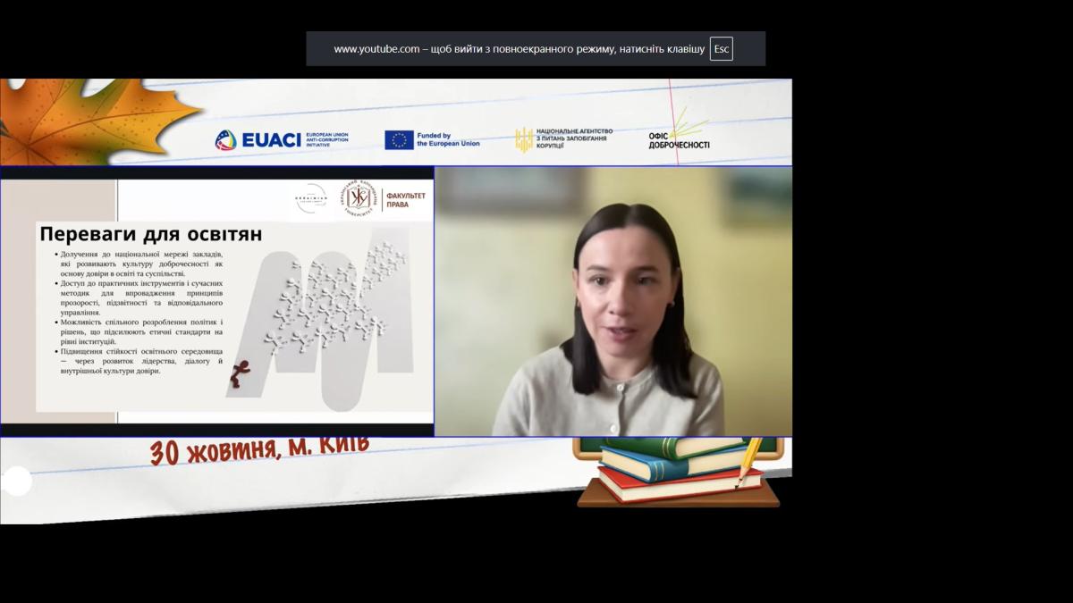 В рамках заходу учасники обговорили нові підходи до розвитку культури доброчесності в українській освіті з метою об’єднання зусиль всіх зацікавлених сторін для впровадження системних змін – від шкіл і професійних закладів до університетів.