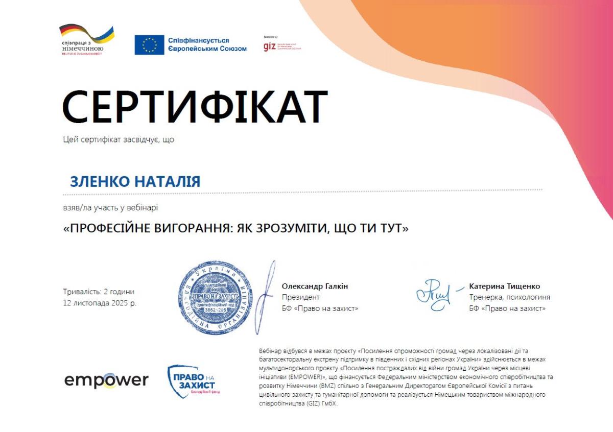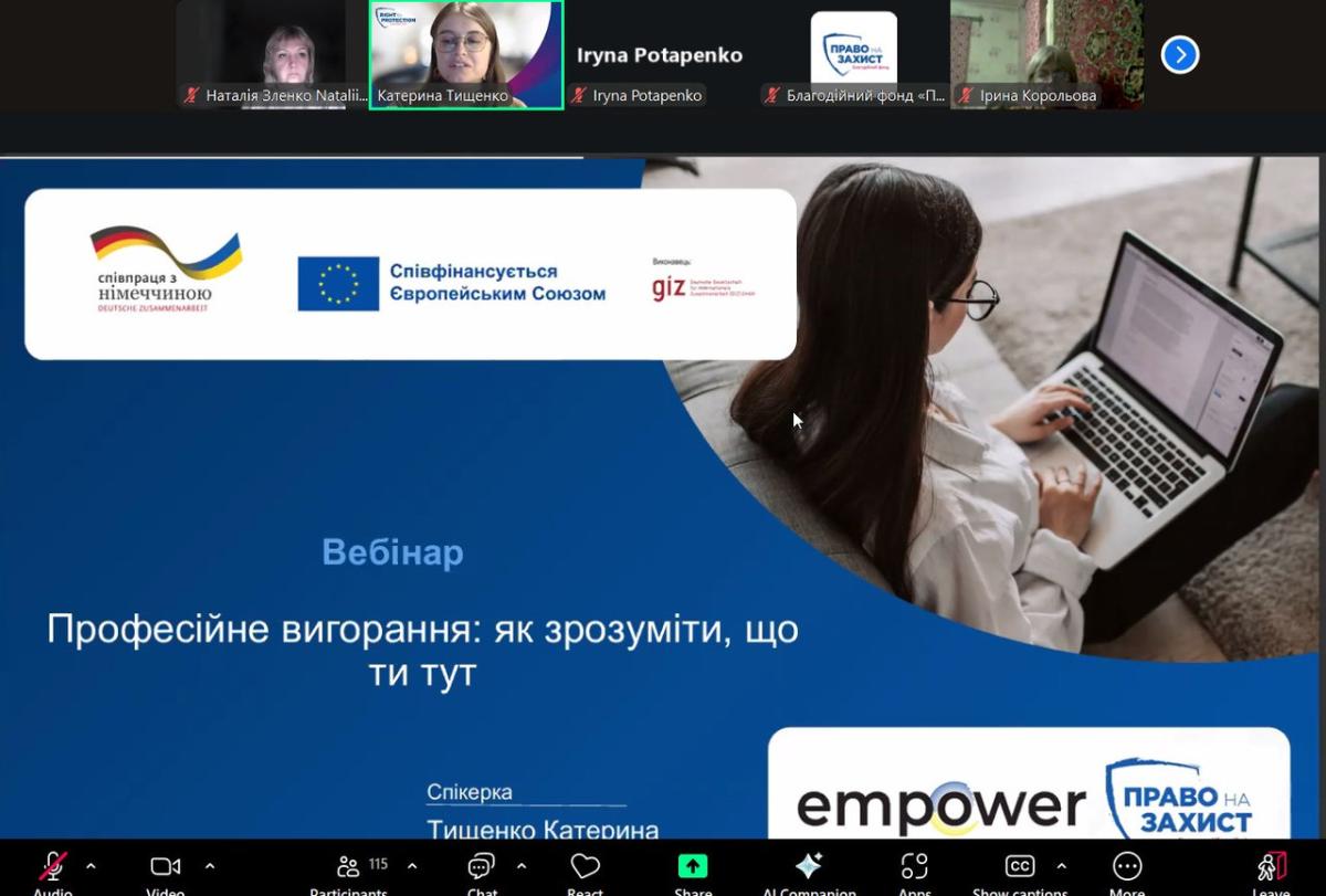 Доценти кафедри гуманітарних дисциплін Сумської філії ХНУВС Наталія Зленко та Тетяна Пономаренко долучилися до вебінару «Професійне вигорання: як зрозуміти, що ти тут», за організації психолога Катерини Тищенко у співпраці зі Службою турботи про психічне здоров’я БФ «Право на Захист».