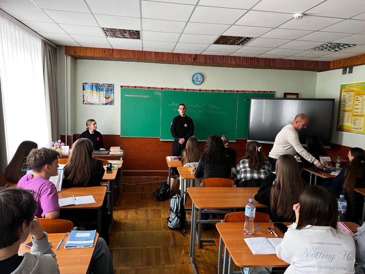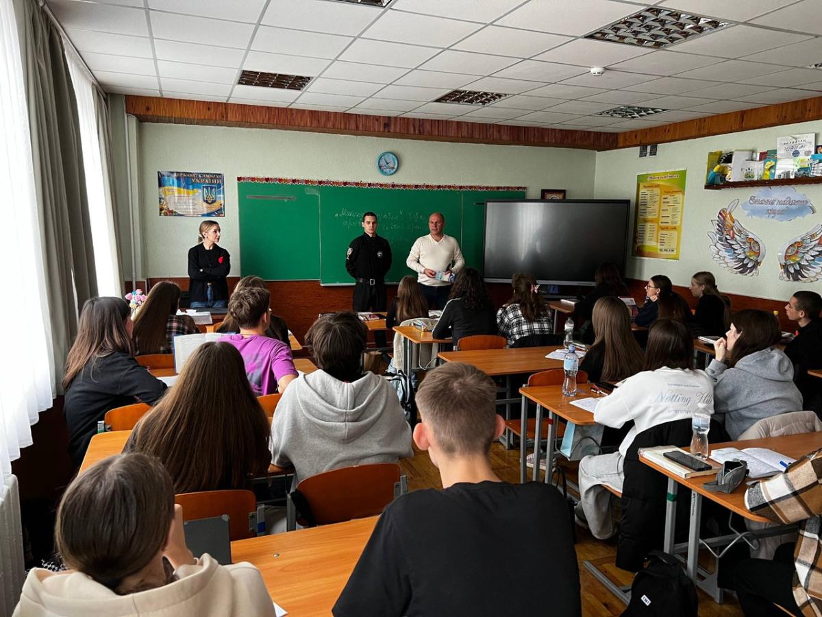 Старший викладач кафедри юридичних дисциплін Сумської філії ХНУВС Андрій СЯДРИСТИЙ разом із курсантами другого курсу Даниілом ІВАНЧИХІНИМ та Максимом ТИМЧЕНКО за підтримки начальника відділу «Служби освітньої безпеки» Кременчуцького РУП ГУНП в Полтавській області старшого лейтенанта Тетяни ПЛЕСКАЧ провели профорієнтаційний захід серед випускників Кременчуцького ліцею № 30 «Олімп» імені Н.М. Шевченко Кременчуцької міської ради Кременчуцького району Полтавської області.