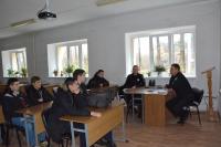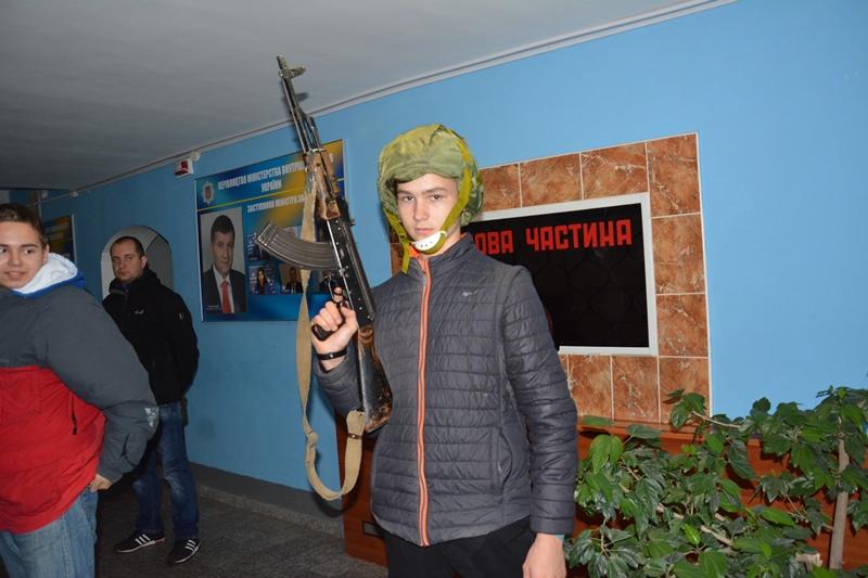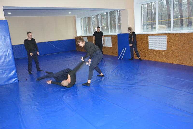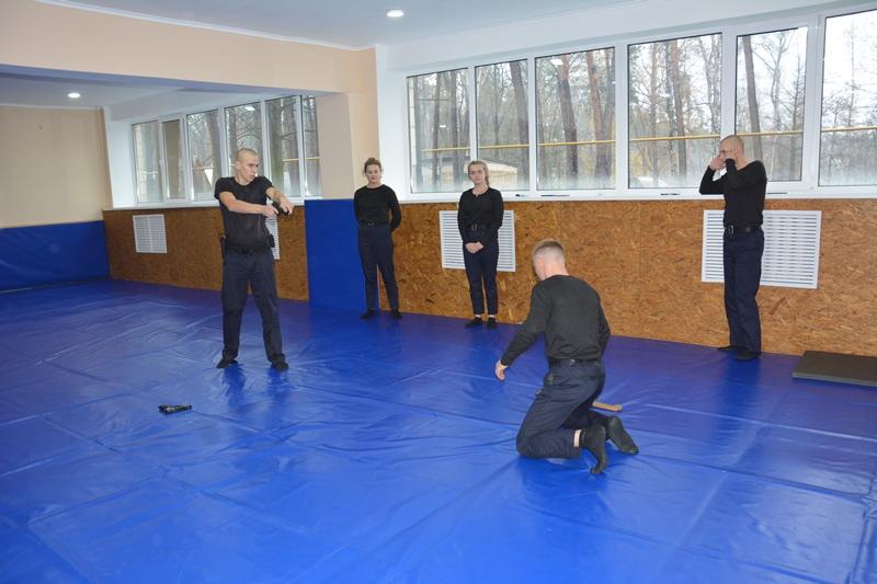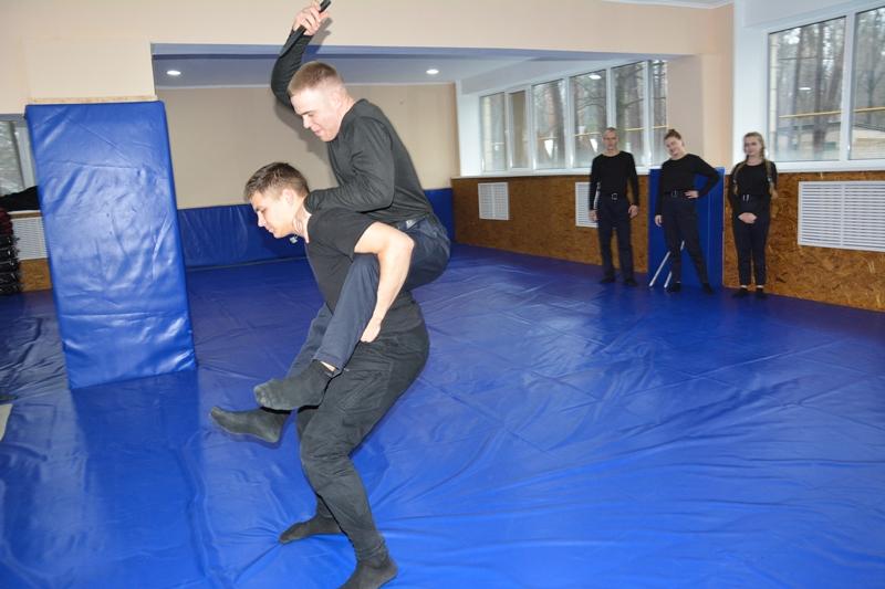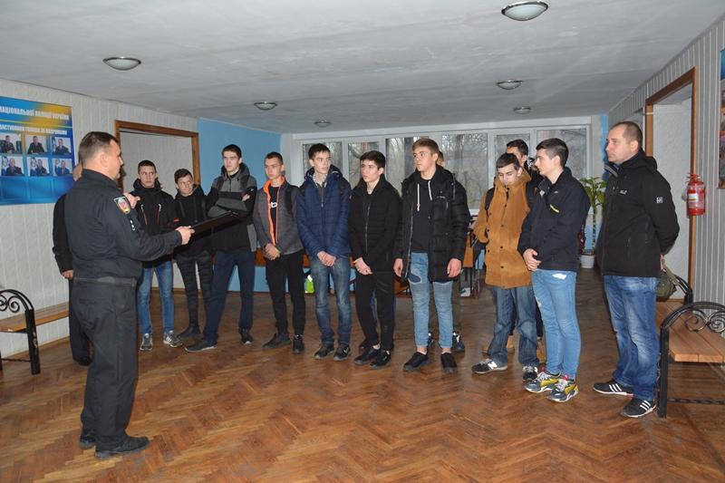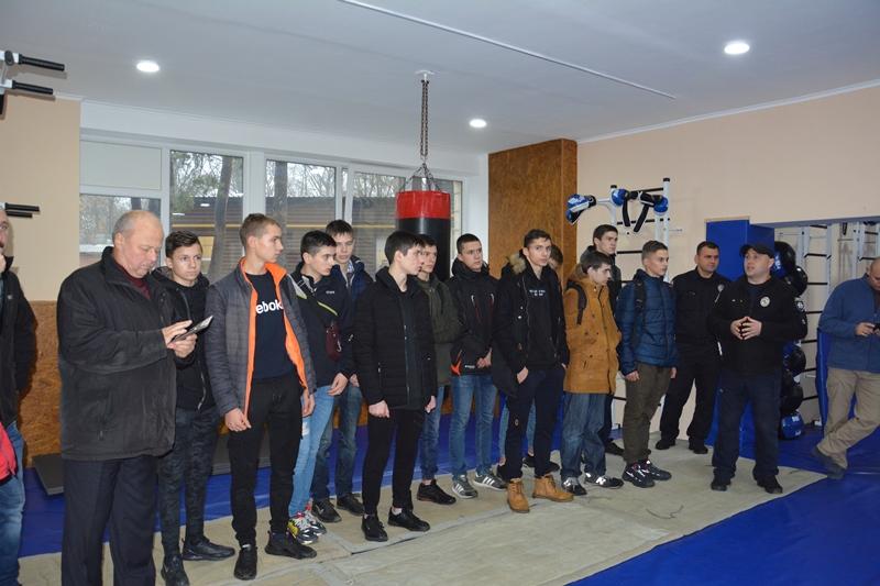 Юнаки мали можливість відчути себе справжніми поліцейськими – одягнути бронежилет, тактичну поясну систему, взяти до рук спеціальні засоби та зброю. Також працівники поліції продемонстрували в спортивній залі володіння прийомами рукопашного бою.