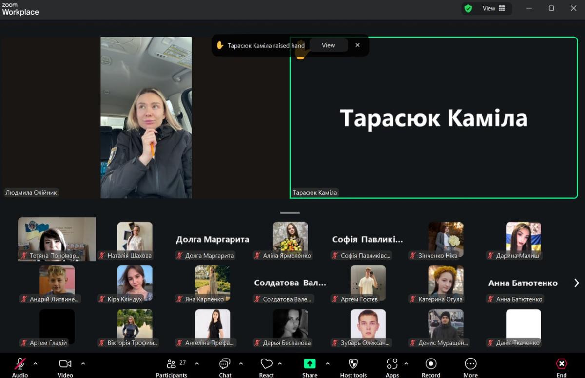 Під час заняття фундаментальні філософські поняття про сутність людини та свободу волі розглядалися крізь призму сучасних викликів. Завдяки участі діючого працівника патрульної поліції студенти мали змогу проаналізувати реальні приклади та зрозуміти, як абстрактний «вибір» трансформується у конкретні дії в екстремальних ситуаціях, та де проходить межа між виконанням обов’язку і злочинними явищами, такими як колабораціонізм та диверсійна діяльність.