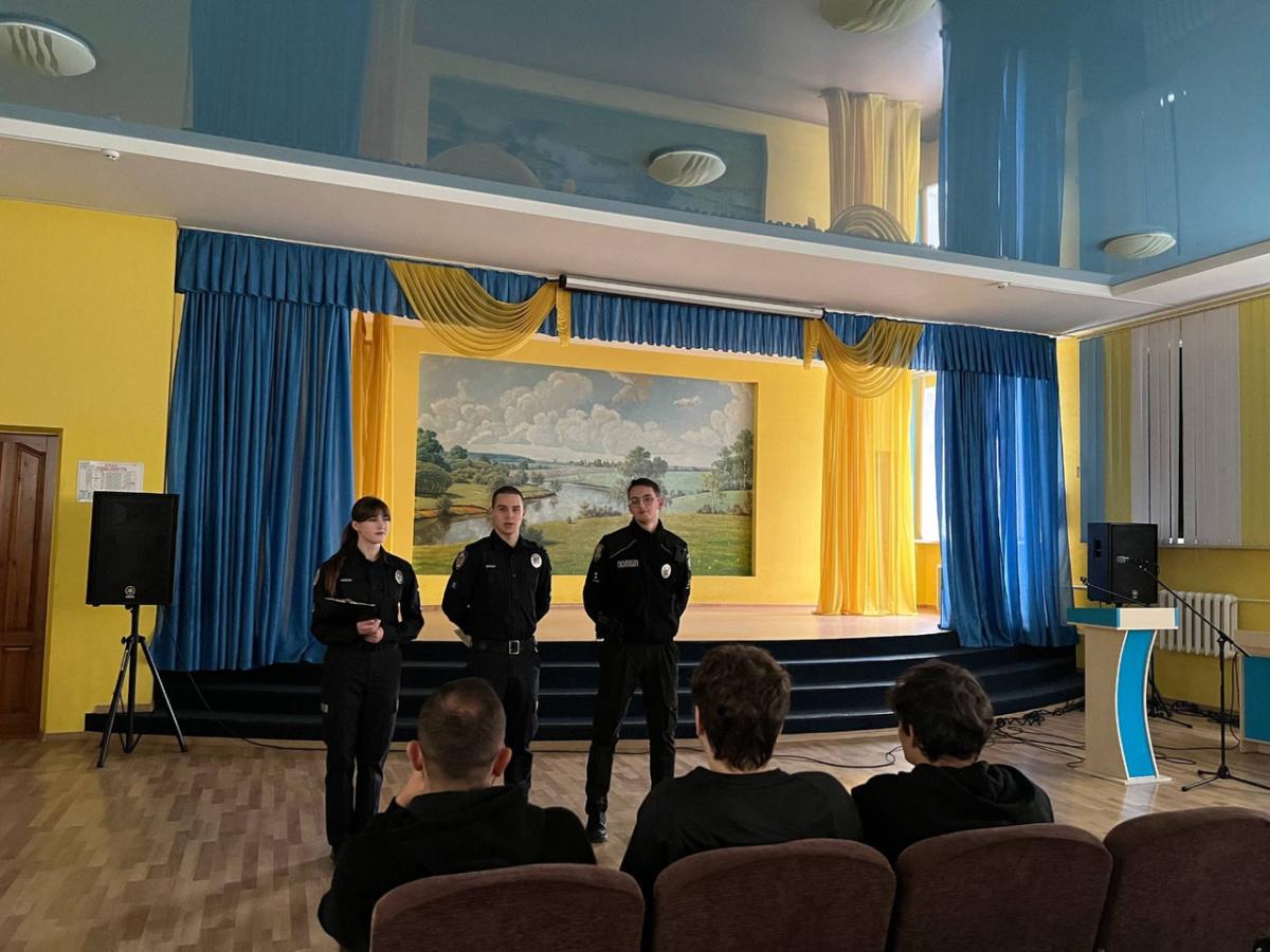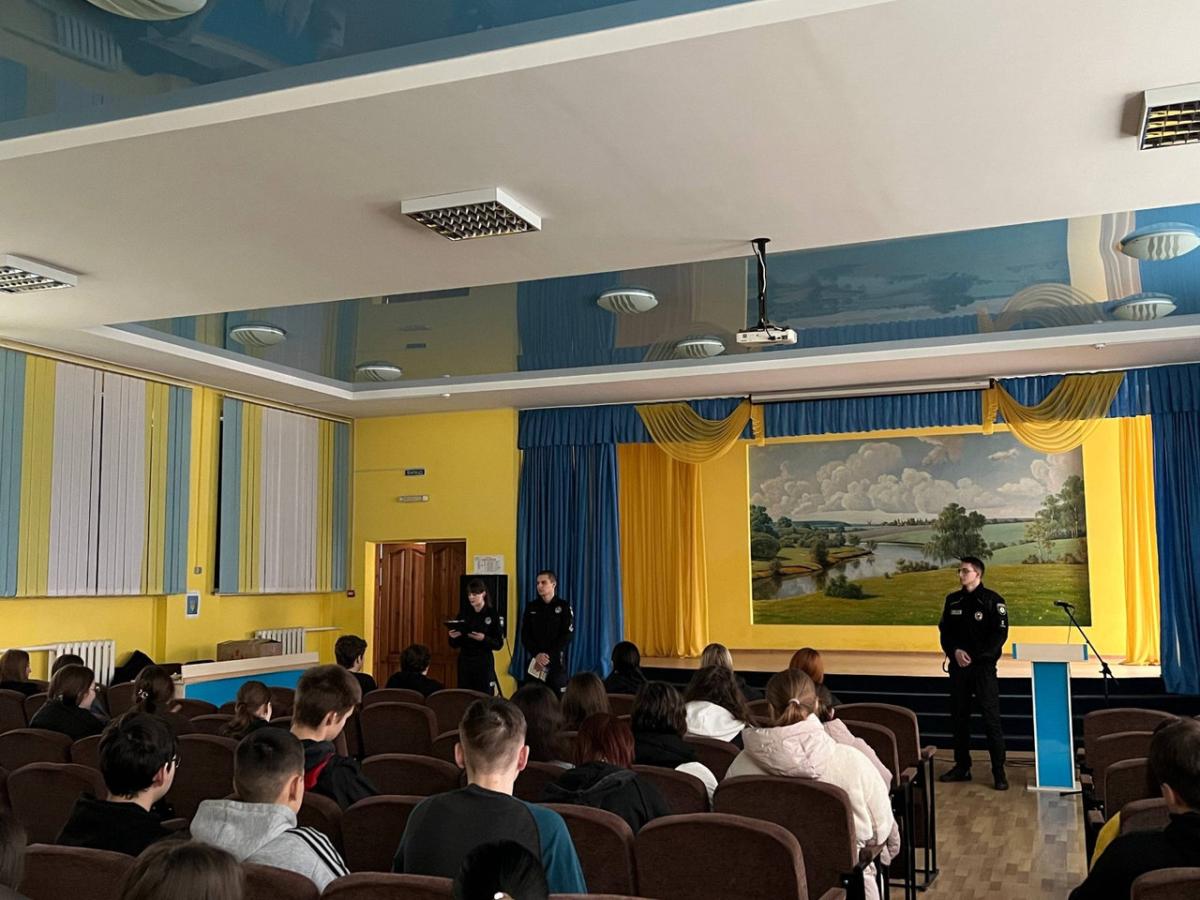 Курсанти другого курсу Сумської філії ХНУВС Даниіл ІВАНЧИХІН, Катерина ЛІСОВЕНКО та Кіріл СИДОРЕНКО відвідали Кременчуцький ліцей № 5 імені Т.Г. Шевченка Кременчуцької міської ради Кременчуцького району Полтавської області з важливою профорієнтаційною місією. Захід, організований за підтримки старшого викладача кафедри юридичних дисциплін Андрія СЯДРИСТОГО та начальника відділу «Служби освітньої безпеки» Кременчуцького РУП ГУНП в Полтавській області старшого лейтенанта Тетяни ПЛЕСКАЧ, був спрямований на ознайомлення випускників ліцею з особливостями навчання у закладі вищої освіти зі специфічними умовами навчання, перевагами юридичної професії та умовами вступу до Сумської філії ХНУВС. Курсанти поділилися власним досвідом, розповіли про цікаве та насичене курсантське життя, а також про можливості, які відкриває правнича освіта.