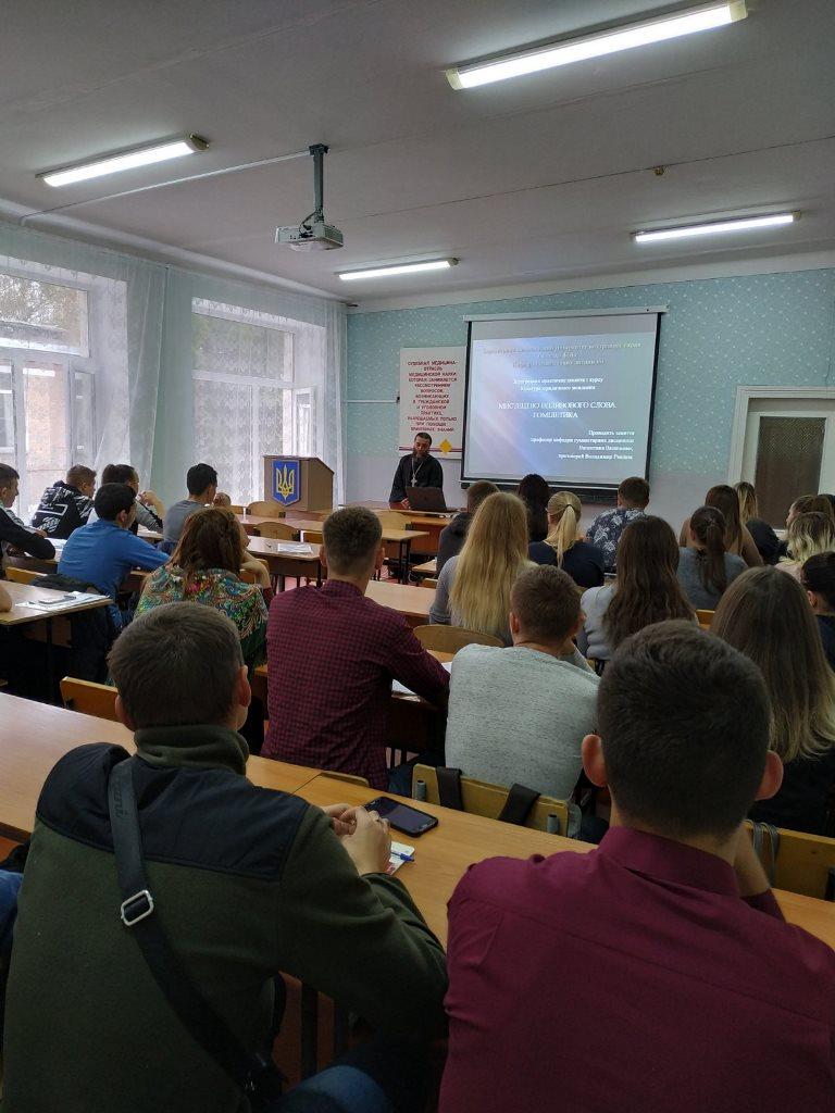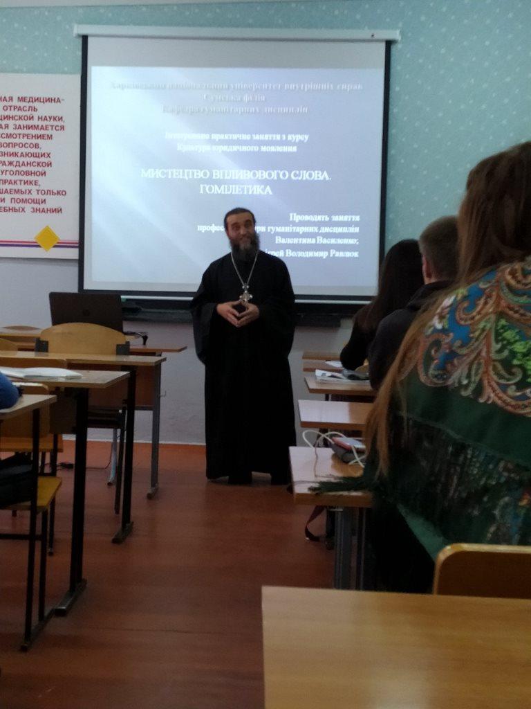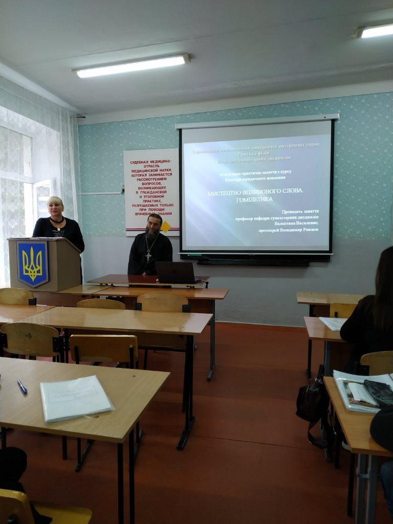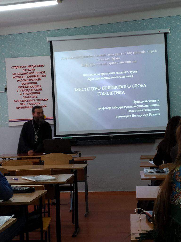 У Сумській філії у рамках освітнього процесу було проведено майстер-клас з українського красномовства (риторики) та гомілетики професором кафедри гуманітарних дисциплін Валентиною Василенко і протоієрем Володимиром Равлюком.