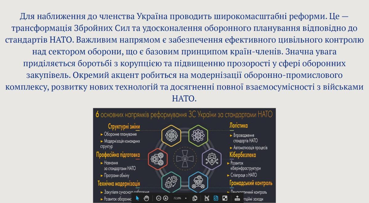 Під час заходу студенти ознайомилися з правовими засадами співробітництва України з НАТО, структурою та принципами діяльності Альянсу, механізмами партнерства та ключовими напрямами реформ сектору безпеки й оборони. Особливу увагу було приділено стандартам НАТО у сфері захисту прав людини, демократичного цивільного контролю, забезпечення прозорості та підзвітності органів безпеки.