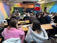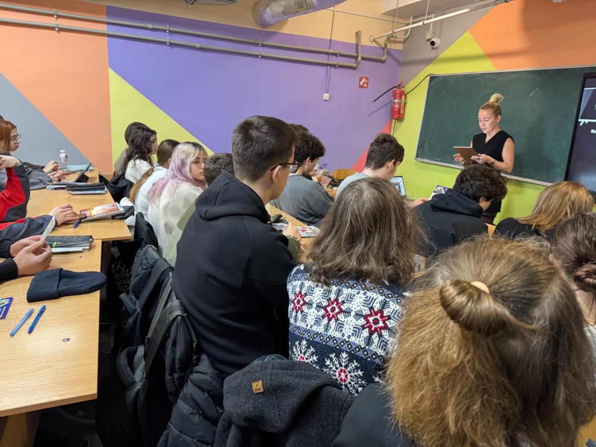 Учні не лише ознайомилися з презентацією університету й інформаційними матеріалами, а й активно обговорювали студентське та курсантське життя, щоденні обов’язки курсантів, участь у проєктах, волонтерських ініціативах та спортивних заходах. Частину зустрічі перетворили на імпровізовану «сесію запитань», де школярів цікавили навіть такі деталі, як перший день в університеті, режим навчання та можливість поєднувати навчання з особистим розвитком.