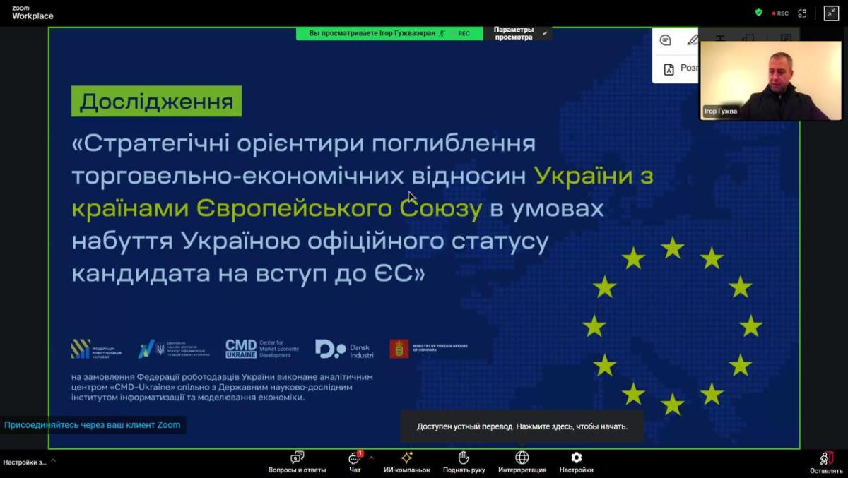 З метою забезпечення практико-орієнтованої підготовки фахівців за спеціальністю К9 Правоохоронна діяльність, в рамках вивчення освітньої компоненти «Основи економічної теорії» за ініціативи завідувача кафедри соціально-економічних дисциплін Сумської філії ХНУВС Олена Лук’янихіної, здобувачі вищої освіти Сумської філії ХНУВС долучились до вебінару "Європейська інтеграція України як взаємовигідний проєкт: програми та інструменти", який провів Ігор Гужва - в. о. директора Державного науково-дослідного Інституту інформатизації та моделювання економіки, радник Комітету з питань економічного розвитку ВРУ.