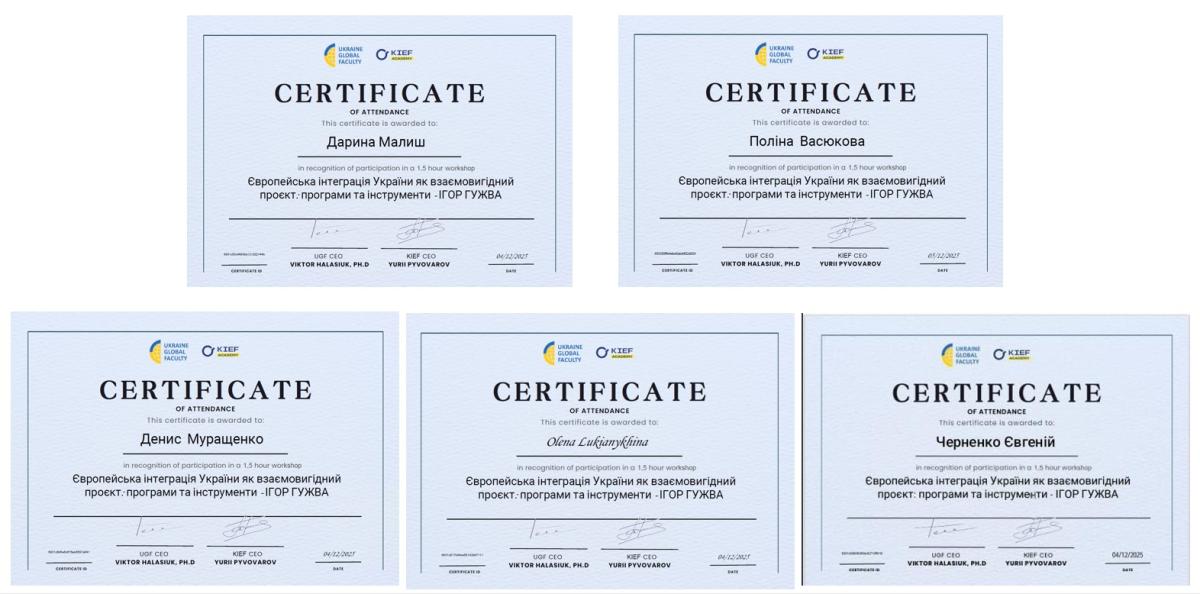Учасники отримали сертифікати, нові знання й компетентності у межах дисципліни «Основи економічної теорії», котрі стануть у нагоді для загального розуміння механізмів євроінтеграційних процесів і можливостей відновлення українських галузей економіки.