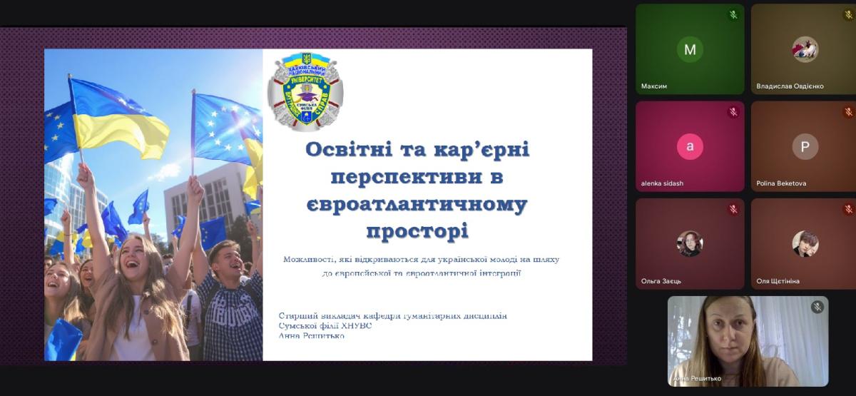 У КУ Сумський НВК №16 СМР відбулася пізнавальна зустріч, присвячена обговоренню освітніх і кар’єрних перспектив у євроатлантичному просторі та сучасних можливостей для молоді, яку організувала та провела викладачка кафедри гуманітарних дисциплін Сумської філії ХНУВС Анна Решитько.