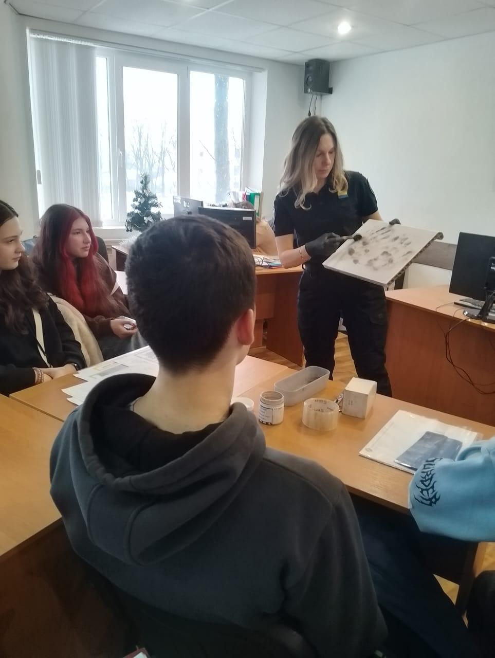 Актуальною, особливо під час воєнних подій, була інформація про вибухово-технічну експертизу, де учасники екскурсії довідались про різноманітні вибухові речовини, вибухові пристрої, сліди та обставини вибуху. Також отримали інструктаж стосовно поведінки у випадку виявлення тих чи інших вибухових пристроїв.
