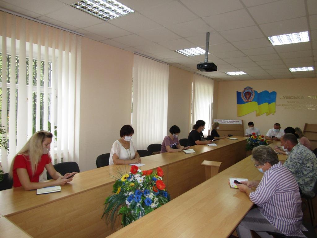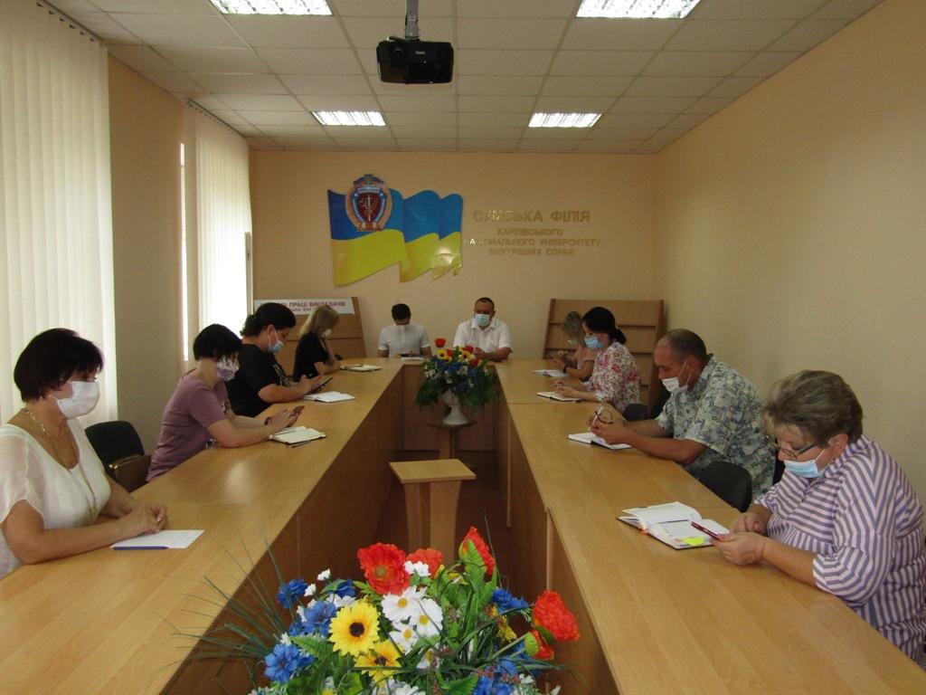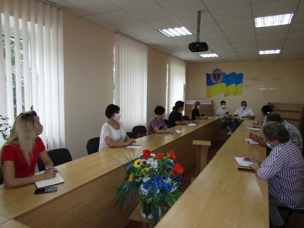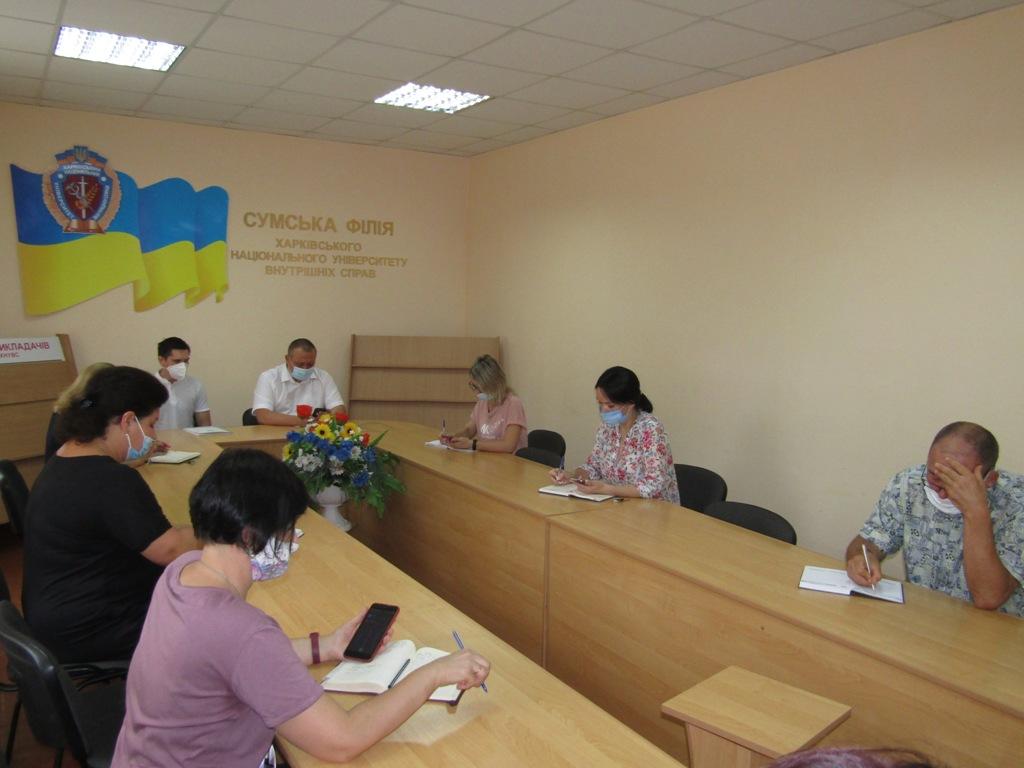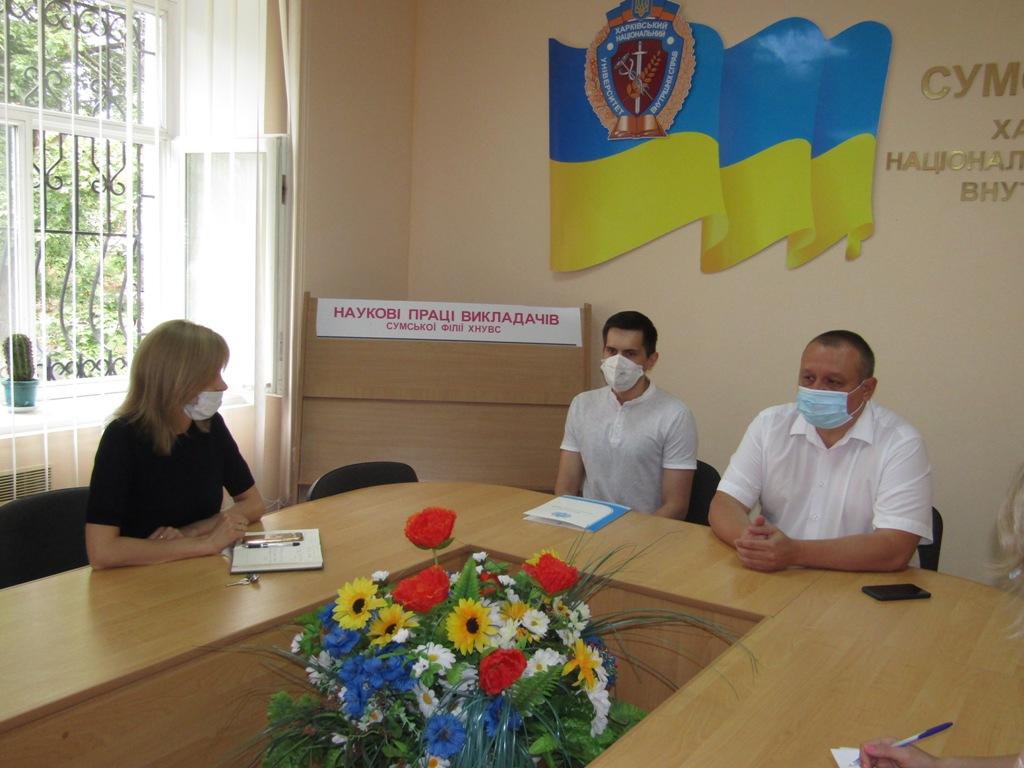 З метою вивчення умов забезпечення якості надання освітніх послуг закладами вищої освіти із специфічними умовами навчання, які здійснюють підготовку поліцейських, було проведено зустріч із керівниками структурних підрозділів та здійснено анкетування співробітників та курсантів Сумської філії.