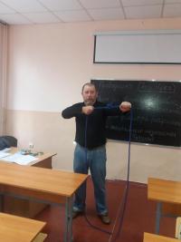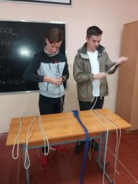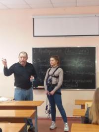 Студенти були ознайомлені з сучасними видами туризму, туристичним спорядженням, структурою спортиного туризму, а також набули практичних навичок в’язання вузлів, які використовуються в туризмі та альпінізмі. Наприкінці практичного заняття проведено змагання на швидкість в’язання вузлів. Переможцем став Дмитро Пустовіт.