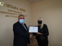 На початку засідання директором Сумської філії доктором юридичних наук, професором Сергієм Станіславовичем Лукашем було вручено відзнаки за сумлінне виконання службових обов’язків, старанність, ініціативу, високий рівень професійної майстерності: Подяку Міністерства внутрішніх справ професору кафедри гуманітарних дисциплін Валентині Анатоліївні Василенко та Диплом ІІІ ступеня переможцю Міжнародного мовно-літературного конкурсу ім. Т.Г.Шевченка курсантові 2-го курсу Валентину Данькову.
