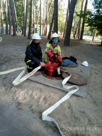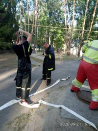 Під час заходу було проведено підключення до пожежного гідранту, розмотування пожежних рукавів, випробовування вогнегаснику при імітації гасіння пожежі та евакуацію курсантів з приміщень із застосуванням пожежної сигналізації.