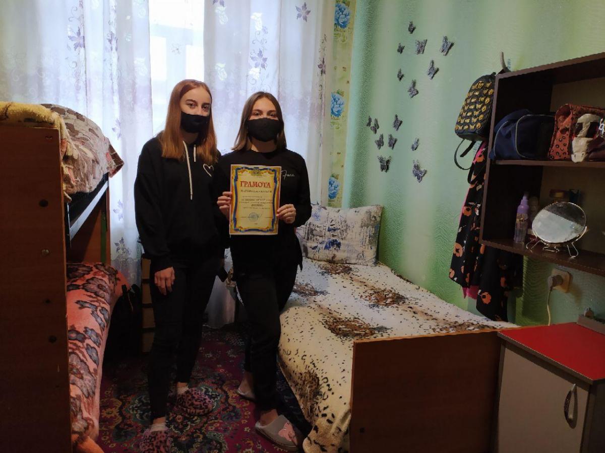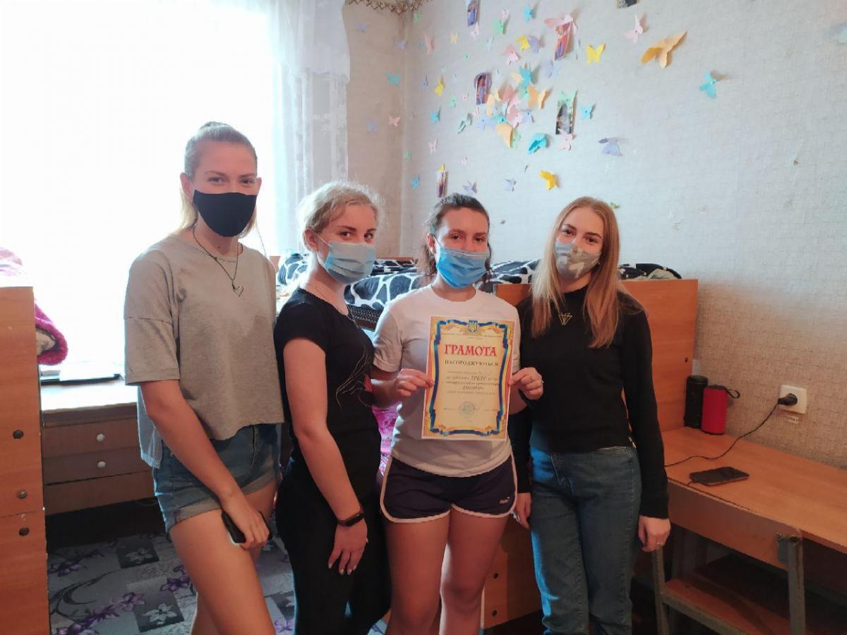 3 місце – кімната № 206, в якій мешкають студентки 1 курсу (Кондрух Аліна Пташок Тетяна, Фененко Катерина, Семенюта Анастасія).