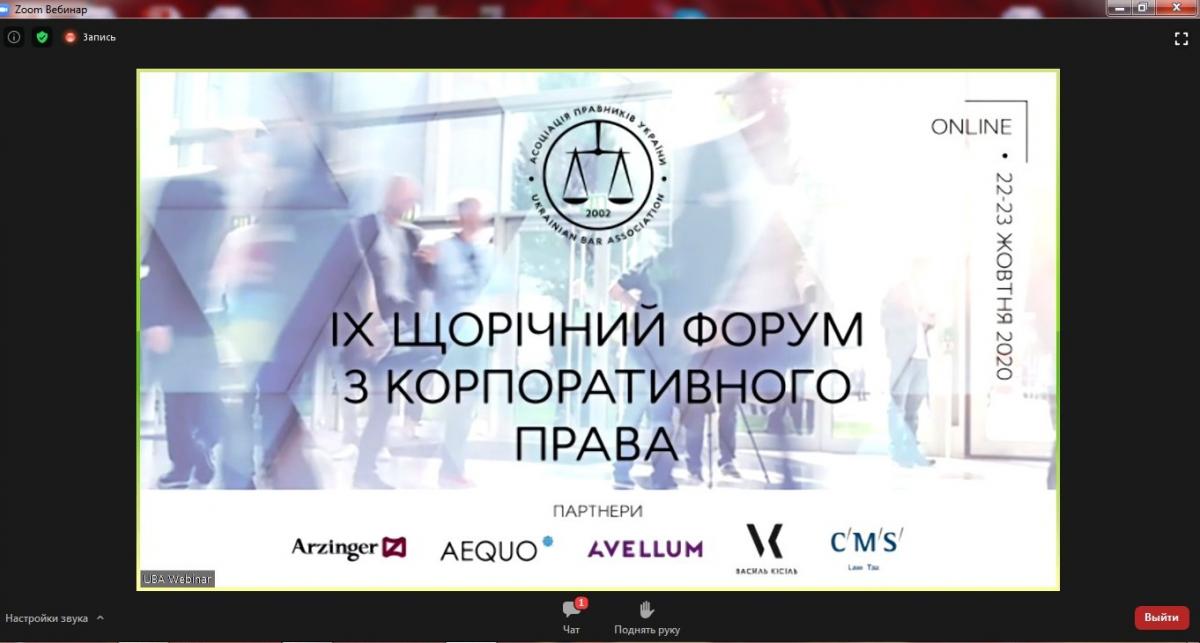 Професор кафедри юридичних дисциплін Горобець Н.О. та доцент кафедри юридичних дисциплін Садикова Я.М. взяли участь у XIV Форумі з корпоративного права, організованого Асоціацією правників України, який відбувся онлайн.