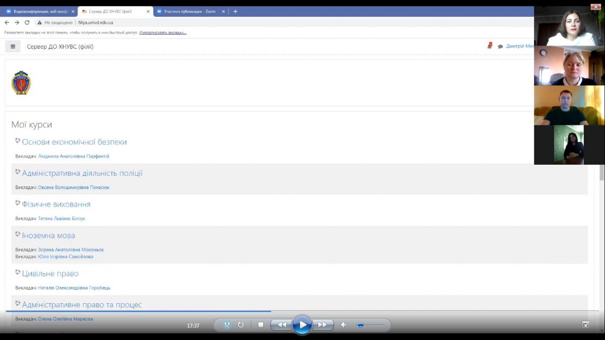Кандидатом економічних наук, доцентом кафедри соціально-економічних дисциплін Сумської філії Харківського національного університету внутрішніх справ Парфентій Людмилою Анатоліївною спільно з кандидатом економічних наук, доцентом кафедри соціально-економічних дисциплін Виганяйло Світланою Миколаївною в режимі відеоконференції була організована онлайн-зустріч студентів першого курсу групи СФ-ПДдср-20-1 та студентів другого курсу групи СФ-ПДдср-19-1 спеціальності «Правоохоронна діяльність» на тему «Основні аспекти дистанційного навчання у Сумській філії ХНУВС: досвід студентів другого курсу у поміч студентам-першокурсникам».