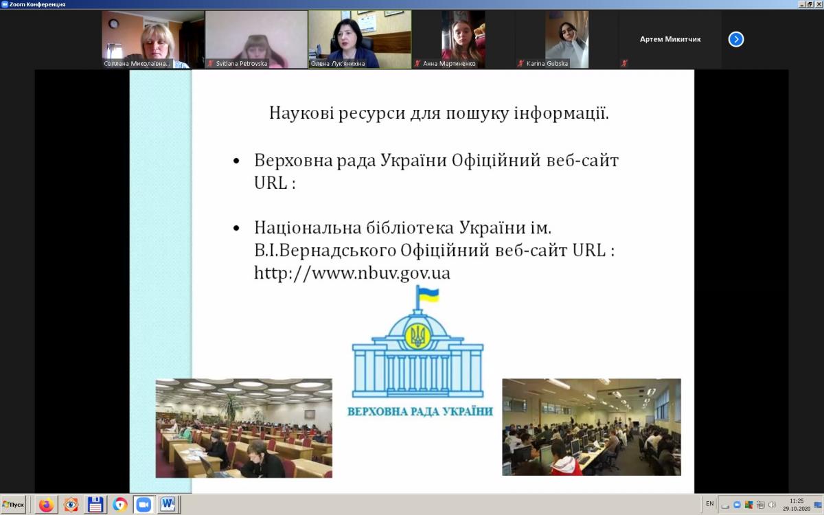 Відповідно до плану гуртка завідувач кафедри соціально-економічних дисциплін, кандидат економічних наук, доцент Лук’янихіна Олена Анатоліївна провела бесіду на тему «Підготовка наукової доповіді: принципи академічної доброчесності, ресурси, методи пошуку інформації».