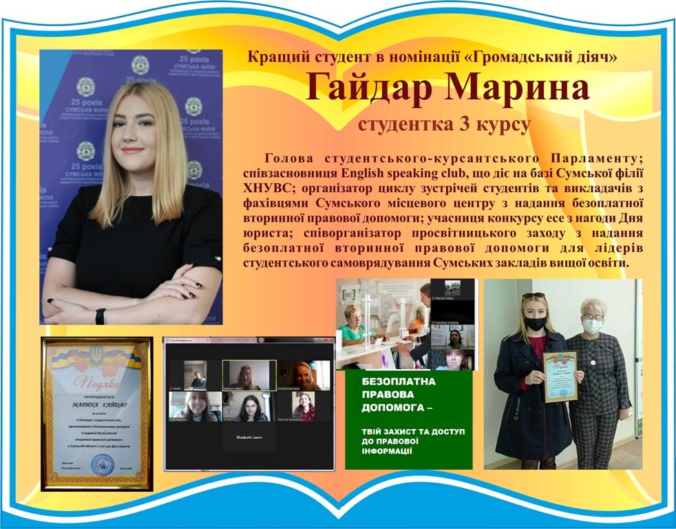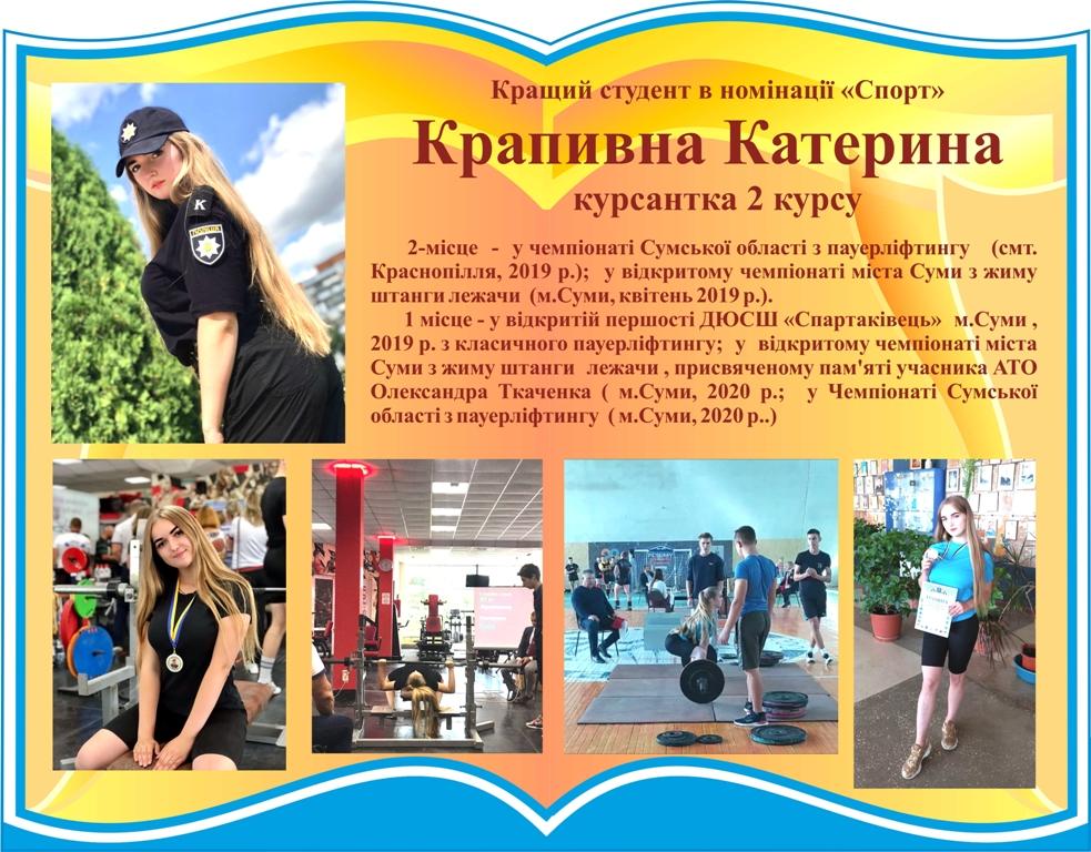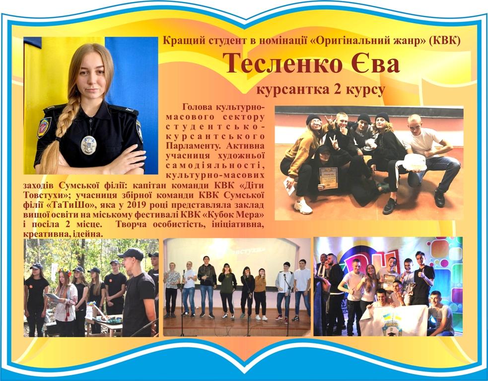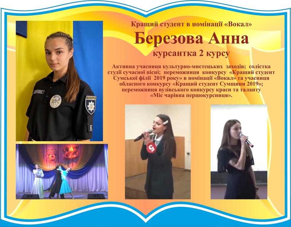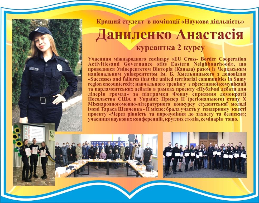 Колектив Сумської філії Харківського національного університету внутрішніх справ пишається досягненнями своїх здобувачів, які підвищують імідж закладу вищої освіти, займаючи призові місця на конкурсах, фестивалях, змаганнях тощо.