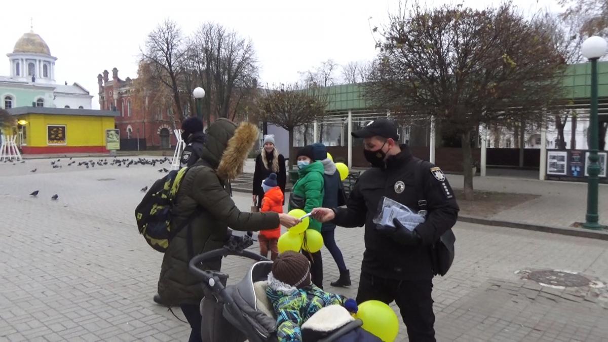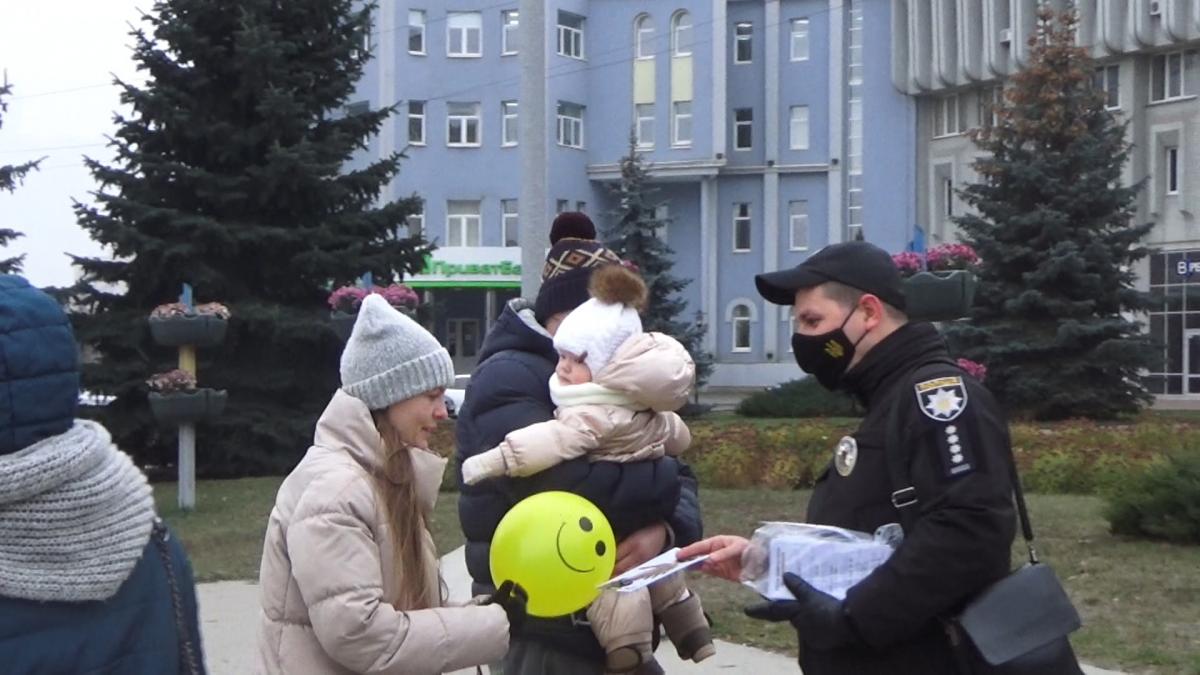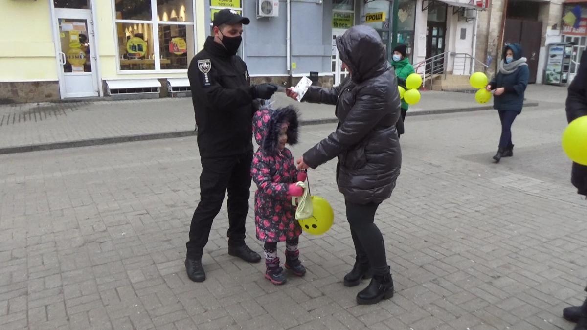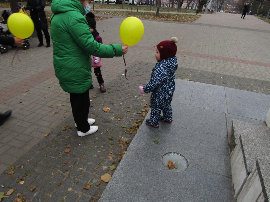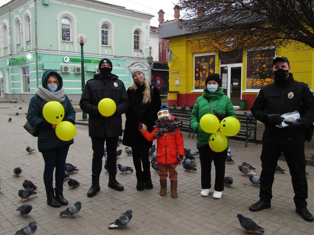 Представники курсантів, студентів та науково-педагогічного складу Сумської філії Харківського національного університету внутрішніх справ за участі старшого інспектора з особливих доручень відділу уповноважених з контролю за дотриманням прав людини в поліцейській діяльності (з дислокацією в Сумській області) Управління дотримання прав людини Національної поліції України Євгенія Євтєєва привітали дітей міста Суми, подарувавши кожному повітряну кульку та цукерки.