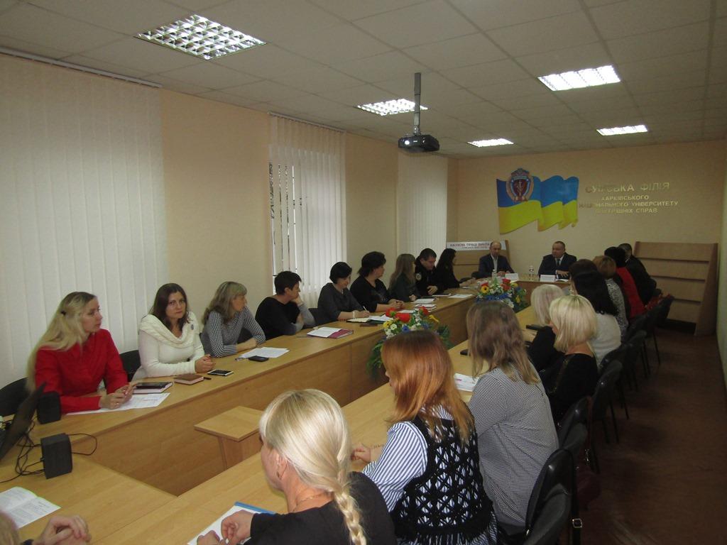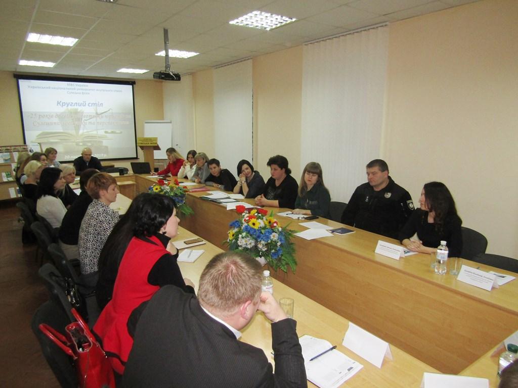 З нагоди відзначення 25-ї річниці утворення Харківського національного університету внутрішніх справ у Сумській філії проведено круглий стіл «25 років досвіду підготовки юристів на Сумщині: здобутки та перспективи». Захід проводився з метою обговорення найбільш актуальних питань підготовки кадрів для судових, правоохоронних та правозастосовчих органів, їх подальшого працевлаштування та адаптації до умов праці.