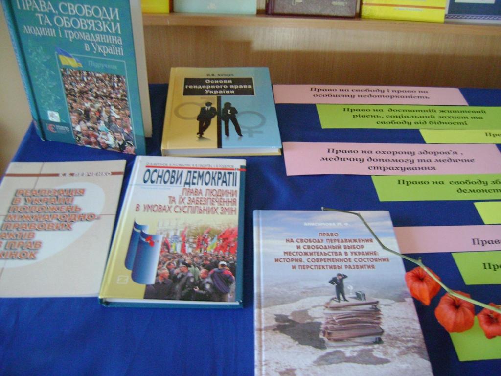 З представлених книг та періодичних видань можна дізнатись як відстоювати свої права, які гарантовані та захищаються державою. Їх потрібно знати й реалізовувати. Але важливо запам’ятати: поводитись слід так, щоб своєю поведінкою не порушувати прав іншої людини. Незнання закону не звільняє від відповідальності за вчинки, дії або бездіяльність.