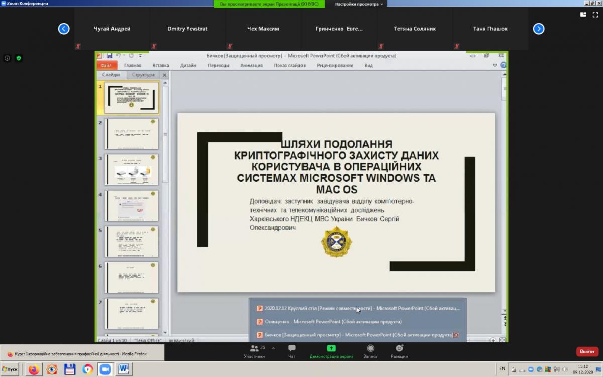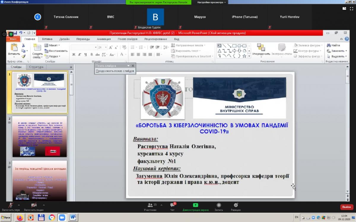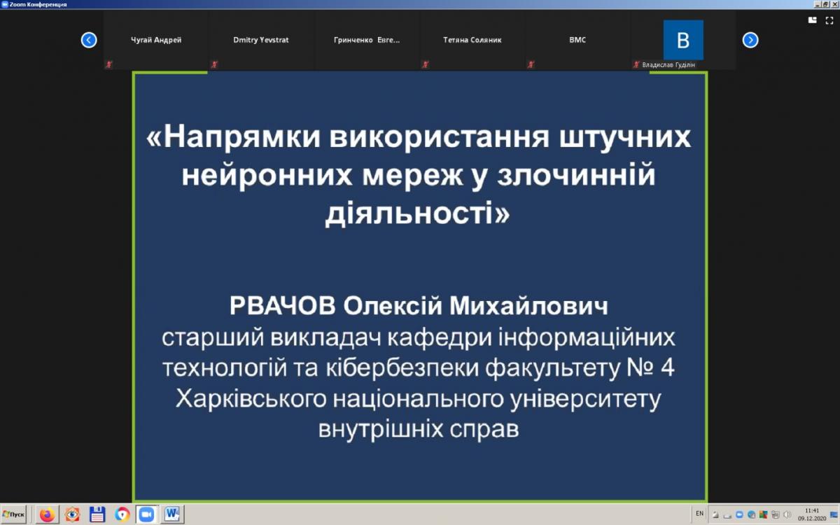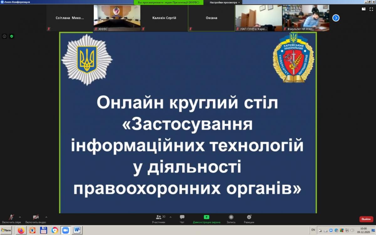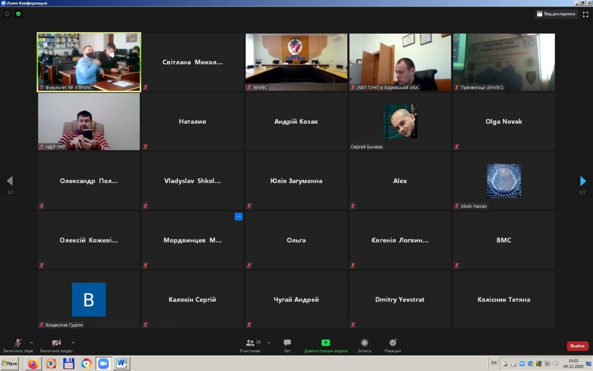 Студенти 1-го курсу разом із доцентом кафедри соціально-економічних дисциплін, к.е.н Виганяйло Світланою Миколаївною брали участь у круглому столі «Застосування інформаційних технологій у діяльності правоохоронних органів», що відбувся у Харківському національному університеті внутрішніх справ і був проведений у режимі відеоконференції.