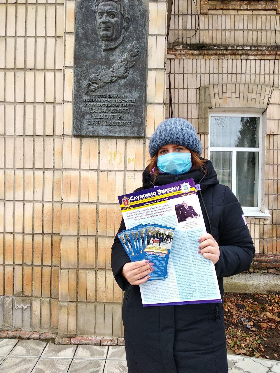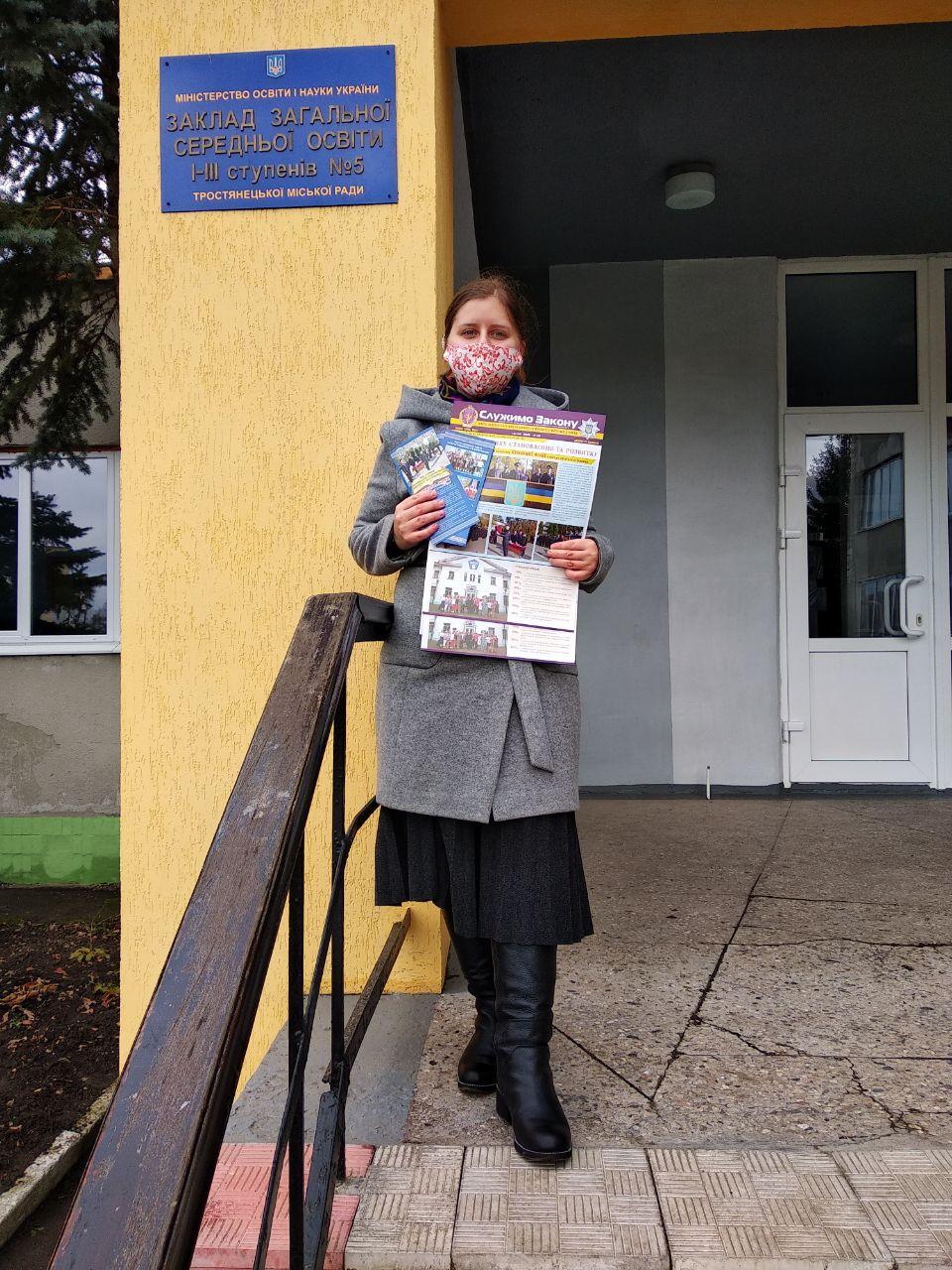 Студенти третього курсу Сумської філії Харківського національного університету внутрішніх справ Ващенко Юлія та Лілія відвідали школи Тростянецького району Сумської області та передали профорієнтаційну продукцію.