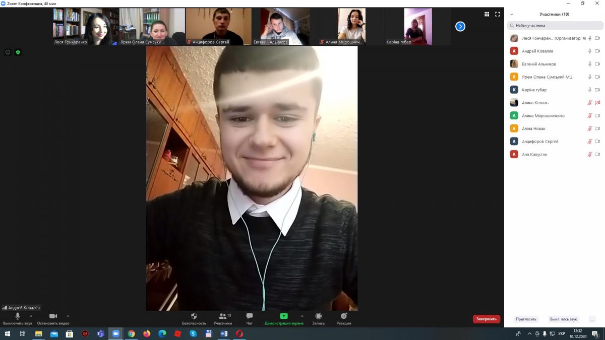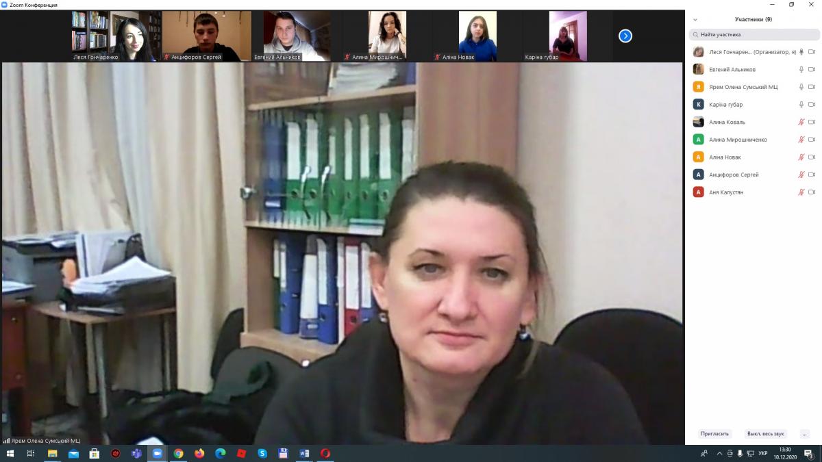 10 грудня 2020 року на базі Сумської філії Харківського національного університету внутрішніх справ доцентом кафедри юридичних дисциплін Гончаренко Лесею Леонідівною та начальником відділу організації надання безоплатної вторинної правової допомоги та роботи з її надавачами Сумського місцевого центру з надання безоплатної вторинної правової допомоги Ярем Оленою Анатоліївною у рамках всеукраїнського тижня права зі студентами другого курсу було проведено онлайн круглий стіл на тему «Проблеми реалізації та захисту прав і свобод людини і громадянина в Україні».