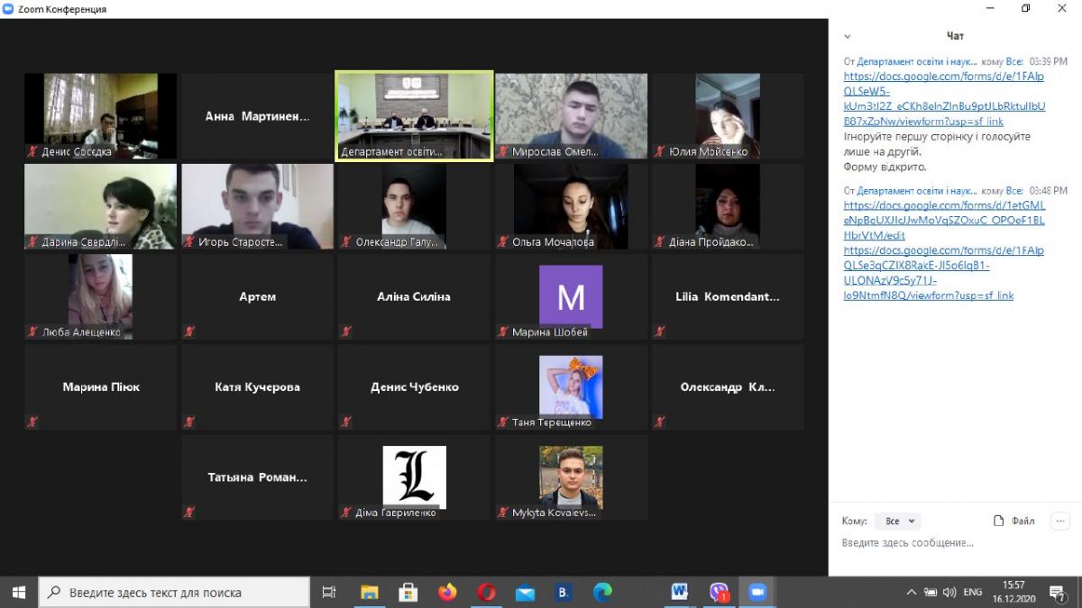 16 грудня 2020 року студентка 2 курсу Сумської філії Харківського національного університету внутрішніх справ Мартиненко Анна взяла участь у першій онлайн-сесії Студентської ради при Сумській обласній державній адміністрації. Під час сесії розглядалися питання щодо обрання голови та заступника Студентської ради, а також її взаємодію з Департаментом освіти та науки Сумської ОДА.