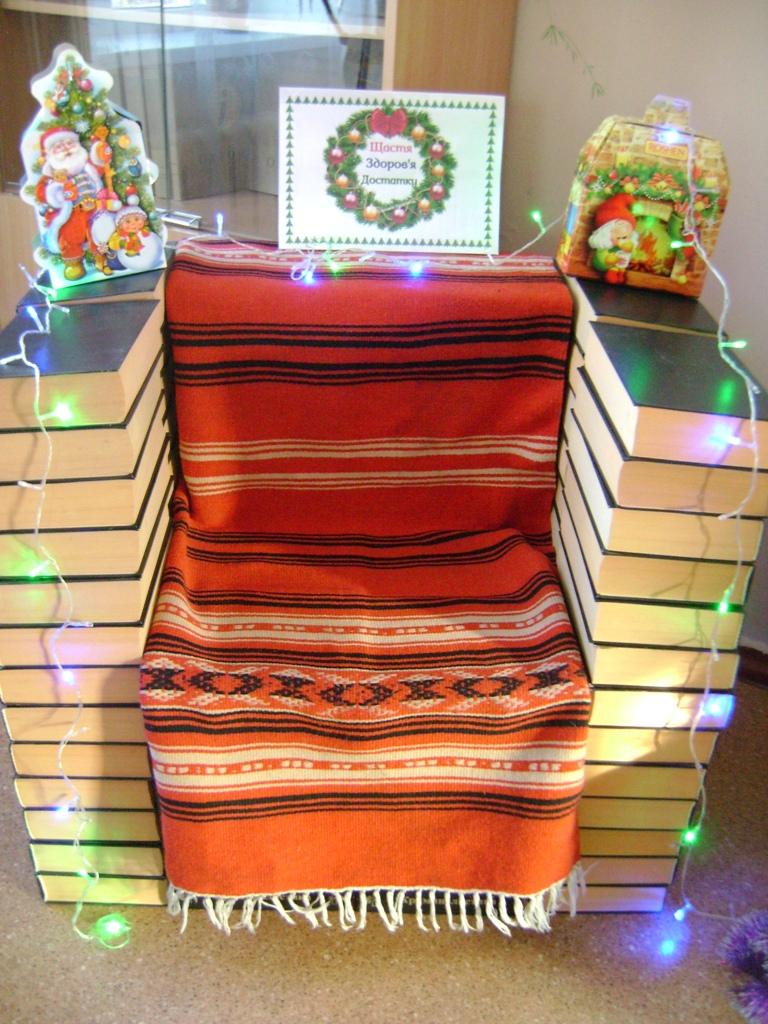 В бібліотеці філії вже присутній Новорічний настрій. Працівники книгозбірні створили для всіх відвідувачів атмосферу свята, організувавши в читальній залі виставку-інсталяцію «Хай рік Новий, Різдво Христове Вам подарують дні казкові», яка має оригінальну форму, оформлення та неповторний дизайн.