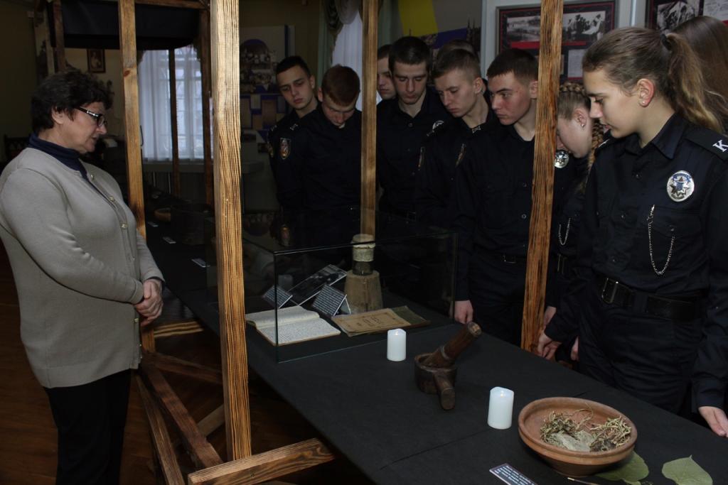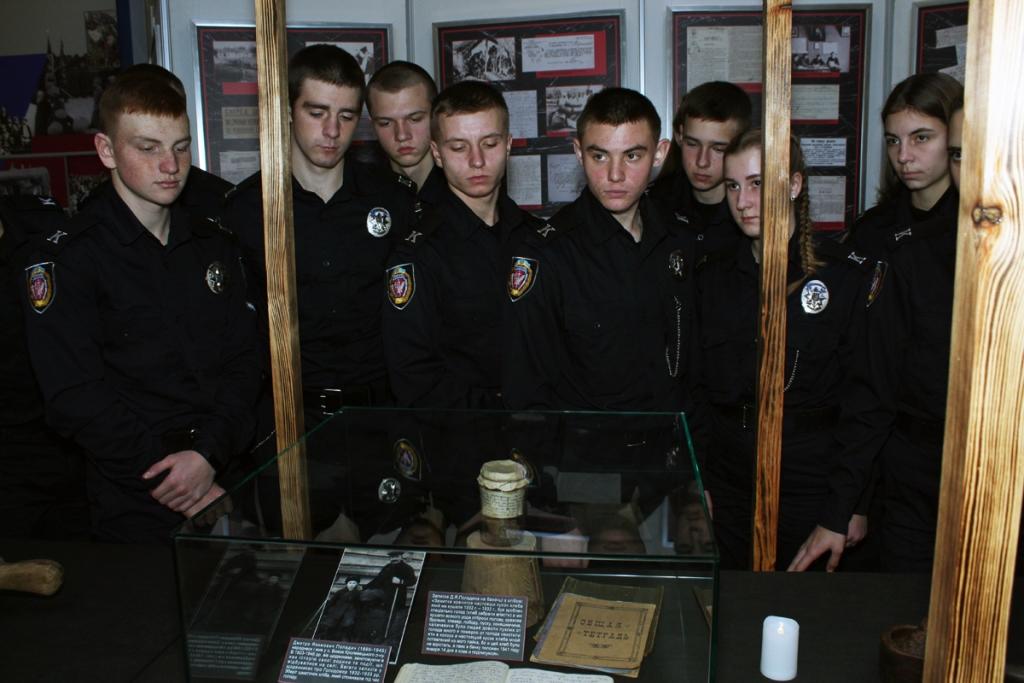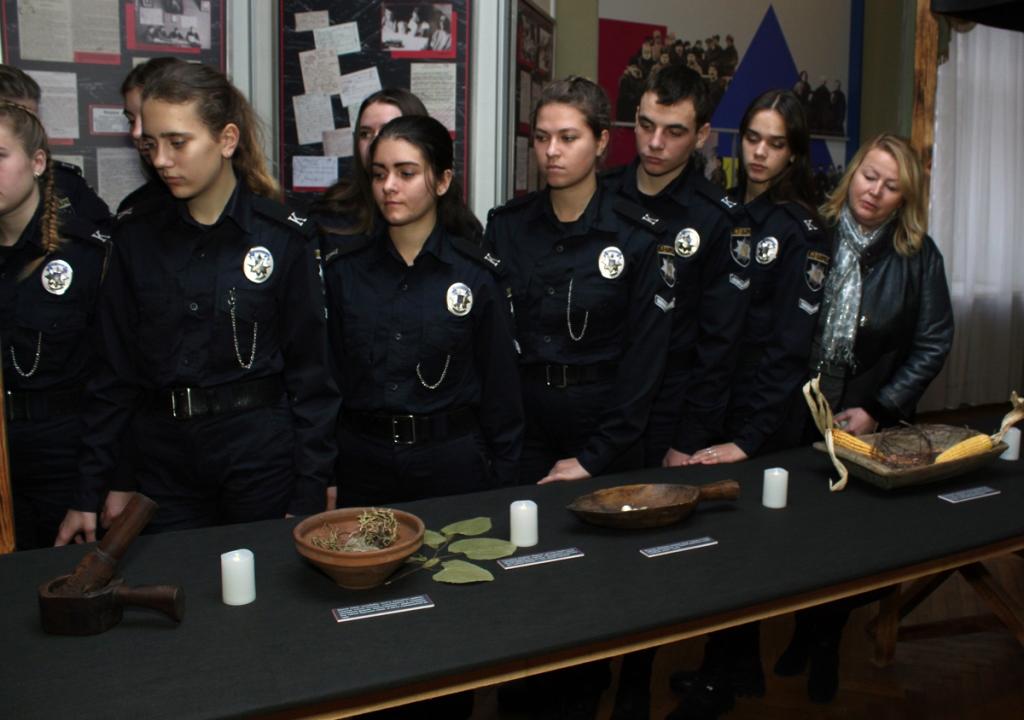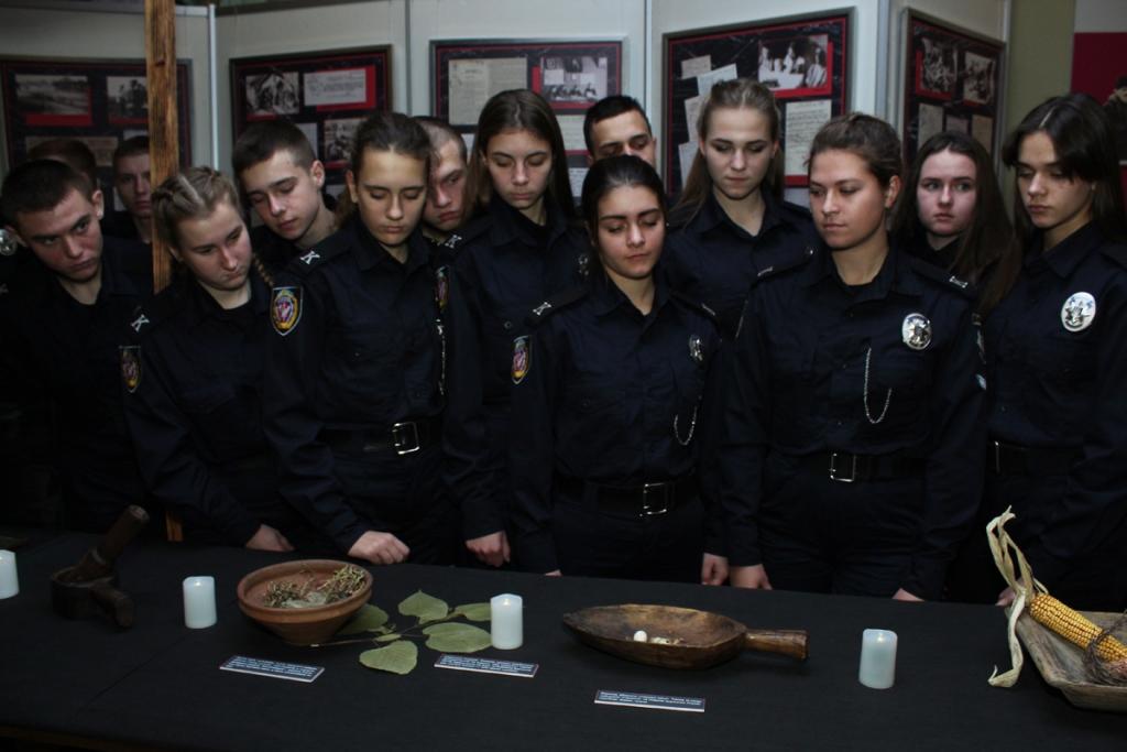 Курсанти Сумської філії Харківського національного університету внутрішніх справ разом з провідним фахівцем відділення кадрового забезпечення Ганною Мітітєл відвідали у Сумському обласному краєзнавчому музеї виставку, присвячену пам’яті жертв Голодоморів 1932-1933 років на Сумщині.