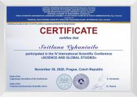 Доцент кафедри соціально-економічних дисциплін Сумської філії ХНУВС Світлана Виганяйло взяла участь у IV Міжнародній науковій конференції "Science and Global Studies", яка проходила у м. Прага, Чеська республіка, наприкінці 2020 р.