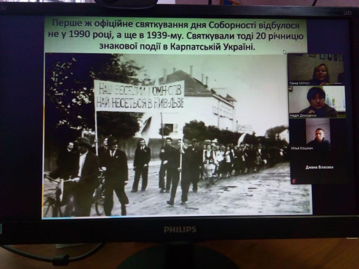 У рамках даного заходу завідувач кафедри гуманітарних дисциплін Надія Демиденко разом зі студентами 1 курсу та курсантами 1-2 курсів обговорили тему «Соборна. Вільна. Самостійна». Надія Демиденко зазначила, що підписанню даного Акту передували складні переговори: ЗУНР вбачала велику небезпеку, що східні українці можуть бути поглинуті Росією. Тому Директорія взяла на себе великі зобов’язання допомогти Галичині повернути всі її етнічні території.