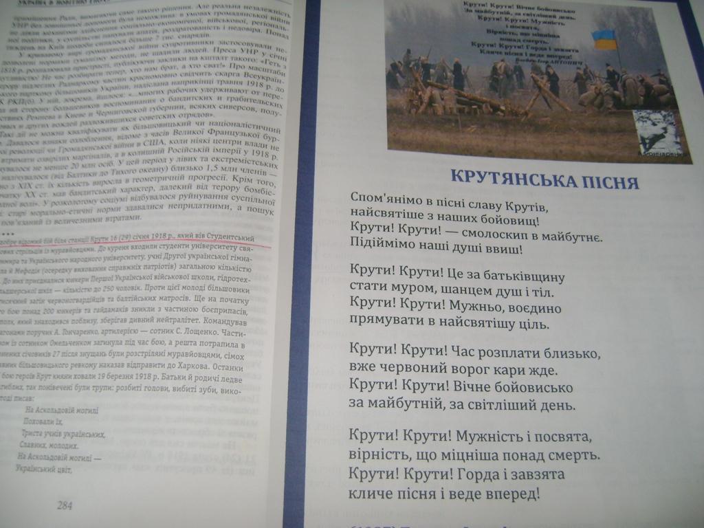 Кров під Крутами не була пролита марно. З неї наче з безсмертя, розквітають пелюстки Волі. Вони боролися, щоб ми перемогли. А нині їх називають «Першими Кіборгами»…