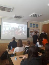 Доцент кафедри гуманітарних дисциплін Юлія Самойлова та провідний фахівець відділення організації служби, капітан поліції Валерій Карабай провели профорієнтаційну роботу серед учнів 11 класу КУ Сумської спеціалізованої школи І-ІІІ ступенів ім. В. Стрельченка.
