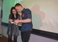 Не обійшлося цього дня і без сюрпризів. Родзинкою та зворушливою подією було привітання курсанта 2 курсу Ярослава Мойсенєнко, який освідчився в коханні курсантці 1 курсу Мар’яні Бойко.