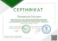 Старший викладач кафедри соціально-економічних дисциплін Сумської філії ХНУВС, кандидат економічних наук Світлана Петровська взяла участь у циклі навчальних вебінарів з наукометрії «Головні метрики сучасної науки. Scopus та Web of Science», що був проведений компанією «Наукові публікації – Publ.Science».
