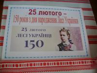 25 лютого 2021 року на державному рівні буде відзначатись 150-річчя від дня народження Лесі Українки – видатної української поетеси, перекладачки, культурної діячки, яка входить до переліку найвідоміших жінок України. Завдяки щирій відданості рідній країні, її ім'я стало одним із символів української держави. 150-річний ювілей Лесі Українки внесено до Календаря пам’ятних дат ЮНЕСКО на 2020-2021 роки.