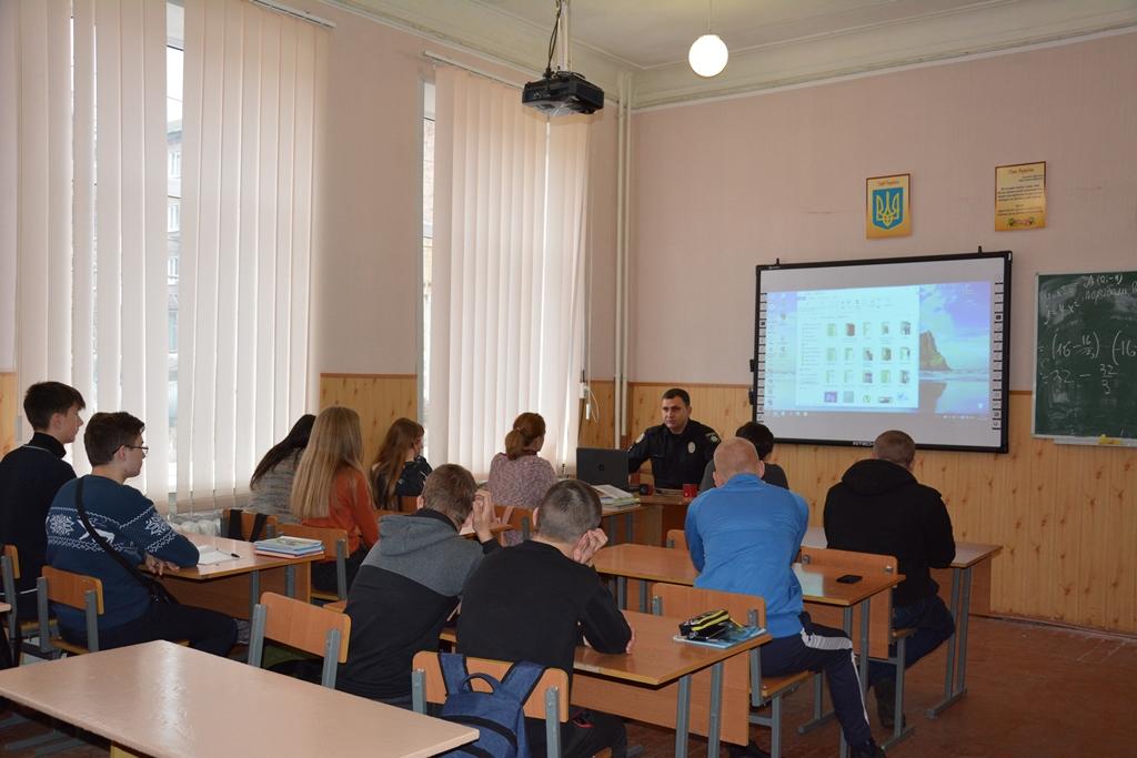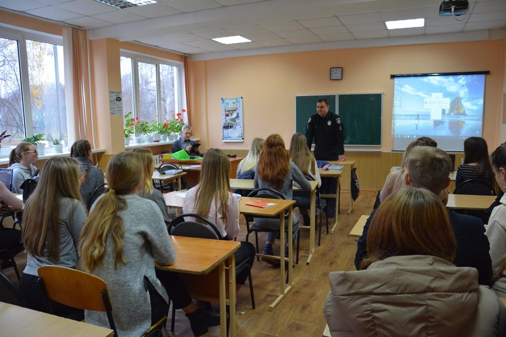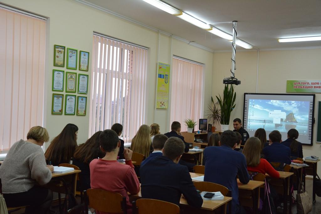 Представники вишу на власних прикладах ділились престижністю професії поліцейського та пропонували старшокласникам спробувати себе в ролі курсантів та студентів вищого навчального закладу. Після цікавих бесід з правоохоронцями всі бажаючі взяли контактні дані навчального закладу, отримали інформацію про правила вступу і подякували поліцейським за актуальну тему надзвичайно інформативної зустрічі.