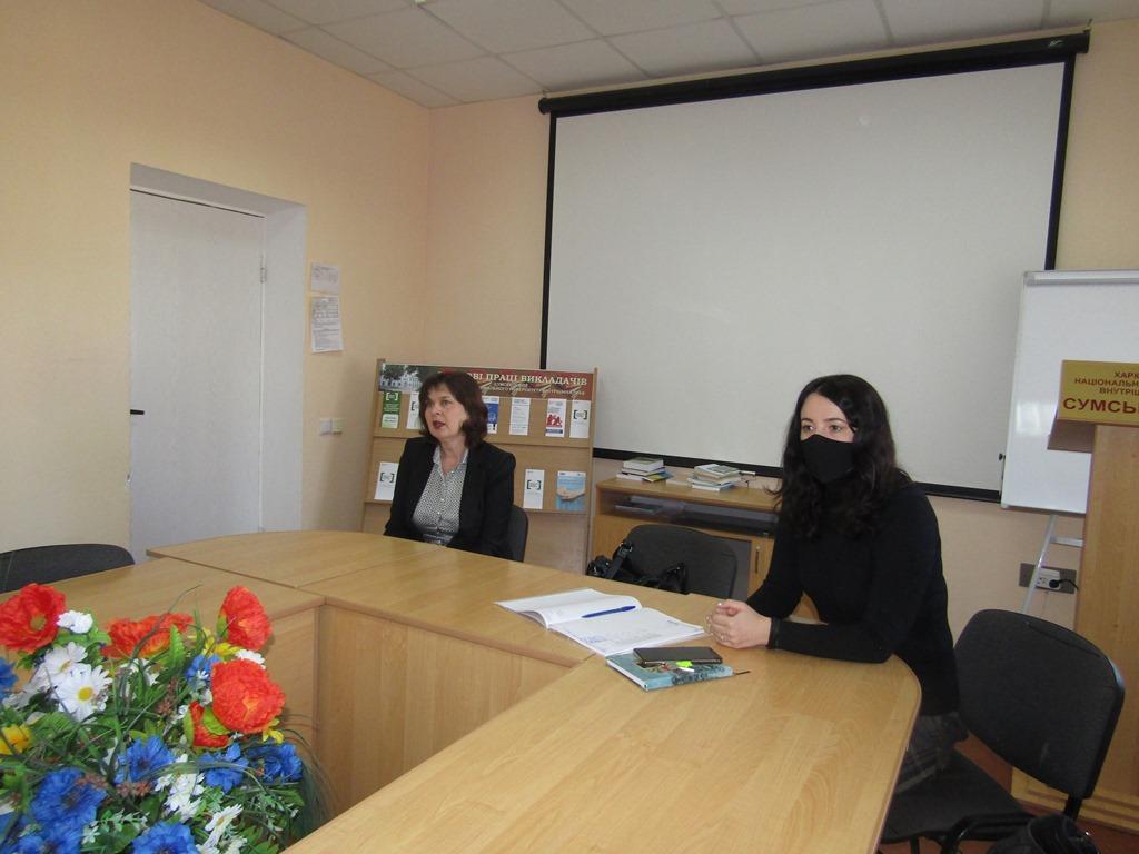 10 березня 2021 року у Сумській філії ХНУВС відбулося бінарне заняття з дисципліни судові та правоохоронні органи України за участі судді Господарського суду Сумської області у відставці, викладача Національної школи Суддів України Харківського та Київського відділення Зайцевої Ірини Володимирівни.